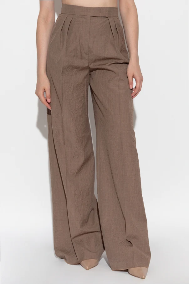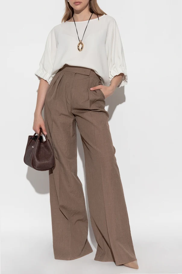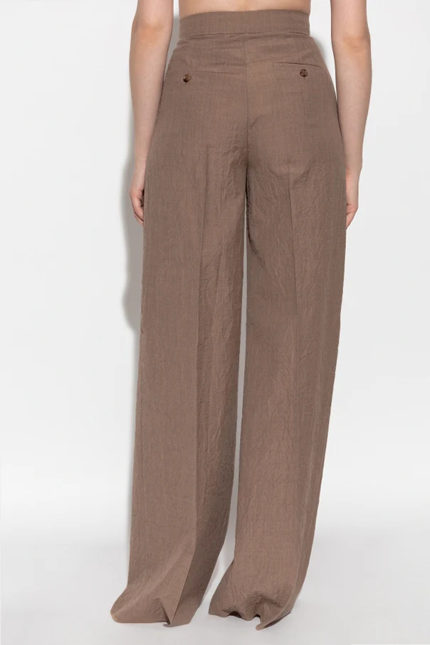 Die Teruel Hose von Max Mara ist ein herausragendes Beispiel für die Verbindung italienischer Schneidertradition mit moderner Eleganz. Sorgfältig gefertigt aus edler, leicht geknitterter Wolle, begeistert sie durch außergewöhnliche Leichtigkeit und luftiges Material, das einen edlen Knittereffekt erzeugt. Der klassische, hohe Bund wird durch weite, gerade und bodenlange Hosenbeine ergänzt, was dem Schnitt einen zeitlosen Charakter verleiht.
