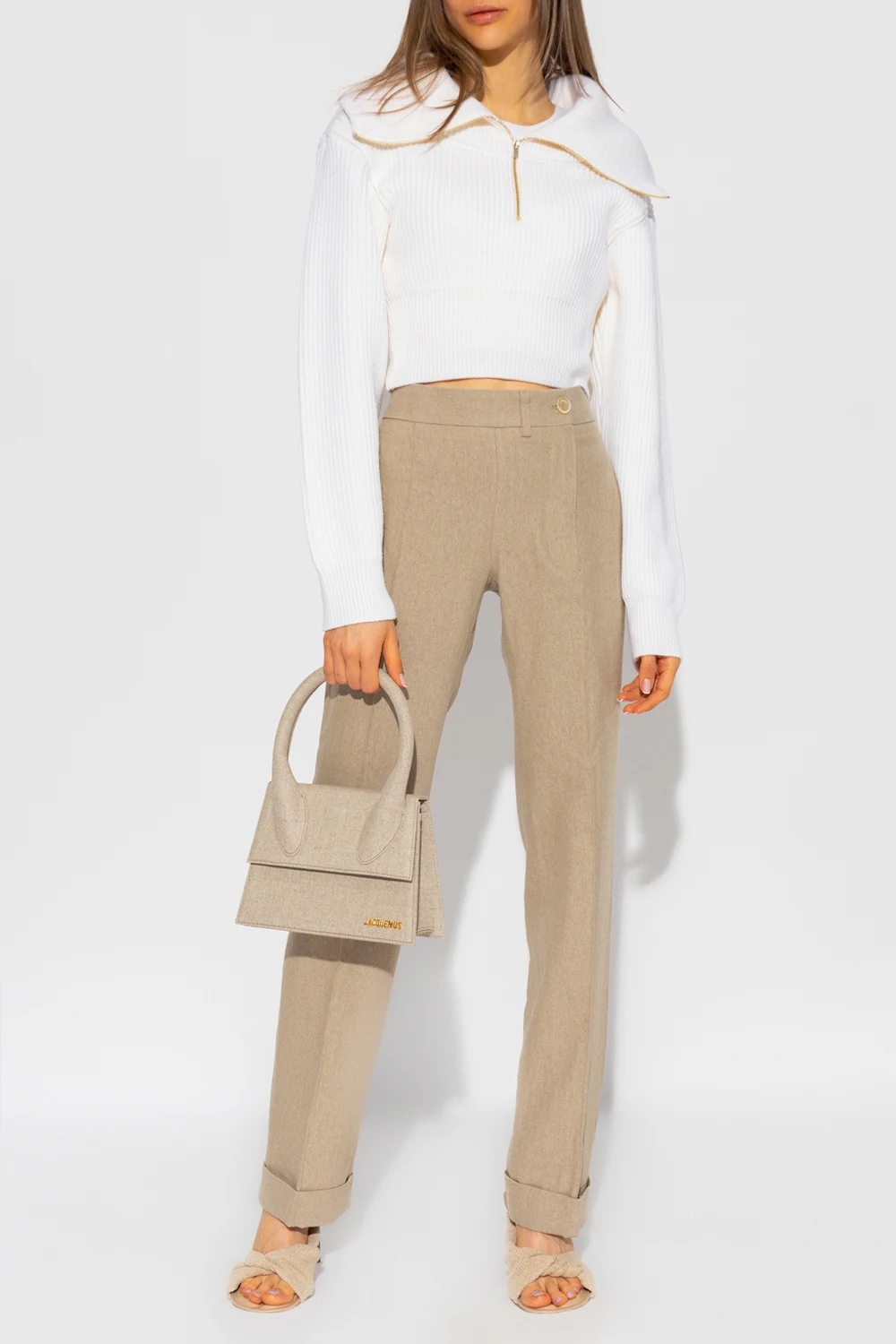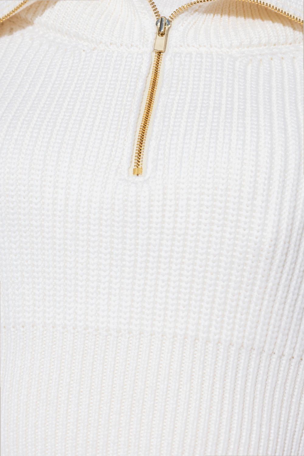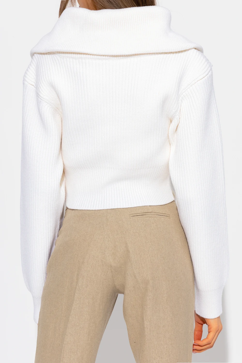 Cream 'Risoul' ribbed sweater from Jacquemus. Made of wool, this garment features a zipped collar and ribbed trims at the hem and cuffs.