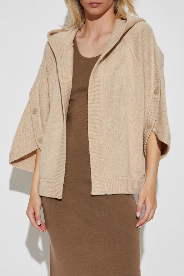 Die Kapuze verleiht dem Cardigan einen lässigen Charme und erhöht gleichzeitig seine Funktionalität. Die Ärmel sind mit dekorativen Knöpfen versehen, die sowohl praktisch als auch schmückend sind und eine individuelle Weitenregulierung ermöglichen. Die Kanten und Ärmelbündchen aus Rippstrick unterstreichen das kunstvolle Finish des gesamten Modells und sorgen für eine perfekte Passform.