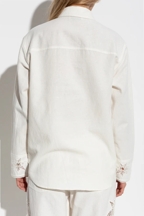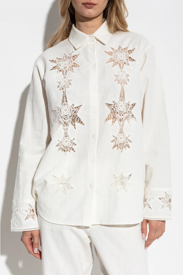 Sein zeitloser Charakter wird durch den traditionellen Kragen und dezent angeordnete, durchbrochene Sternenmuster unterstrichen, die durch präzise Stickerei- oder Cut-Out-Technik entstanden sind. Diese Ziernähte an Vorderseite und Manschetten verleihen dem Gesamtbild eine raffinierte, handwerkliche Note. Der Verschluss mit feinen, weißen Knöpfen hebt die Harmonie zwischen klassischem Stil und funktionaler Kunst hervor.