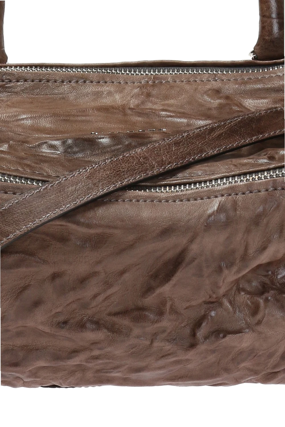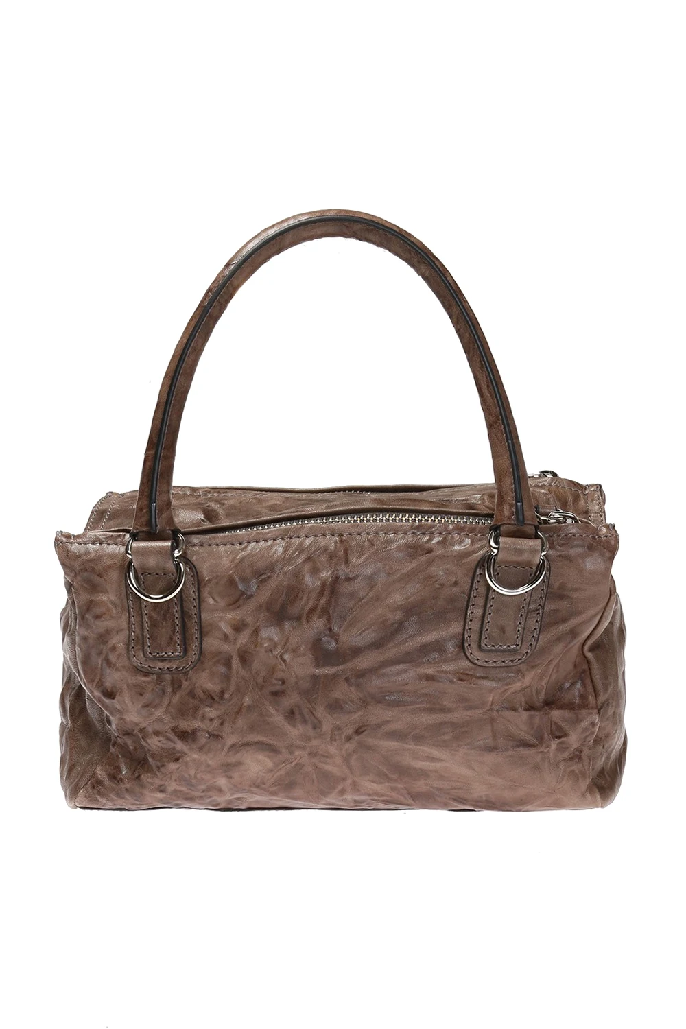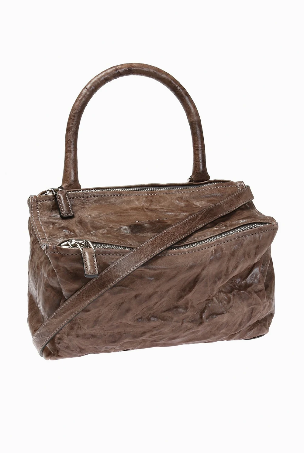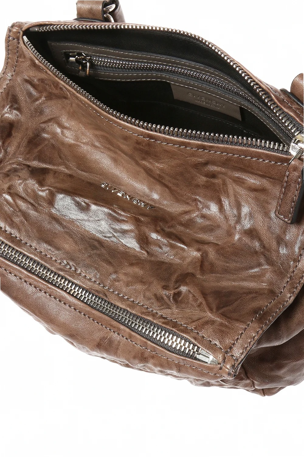 Brown leather 'Pandora' shoulder bag from Givenchy with crease effect. Zip fastening. Logo on the front. Long, detachable leather shoulder strap. Silver-tone metal hardware.