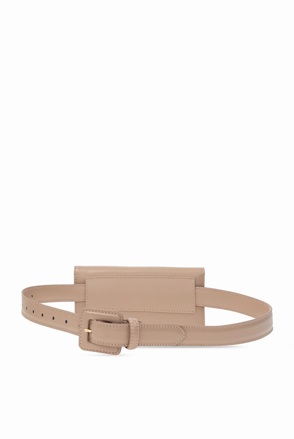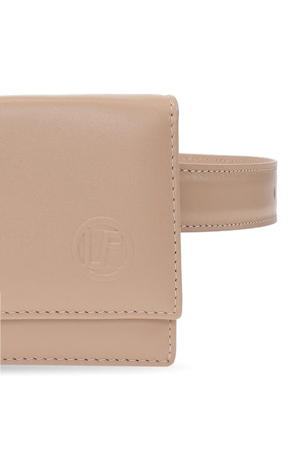 Blush pink sunglasses case from Linda Farrow. Hand-crafted from leather with raised monogram detail, this accessory fastens via magnetic press stud and comes with a detachable waist belt.