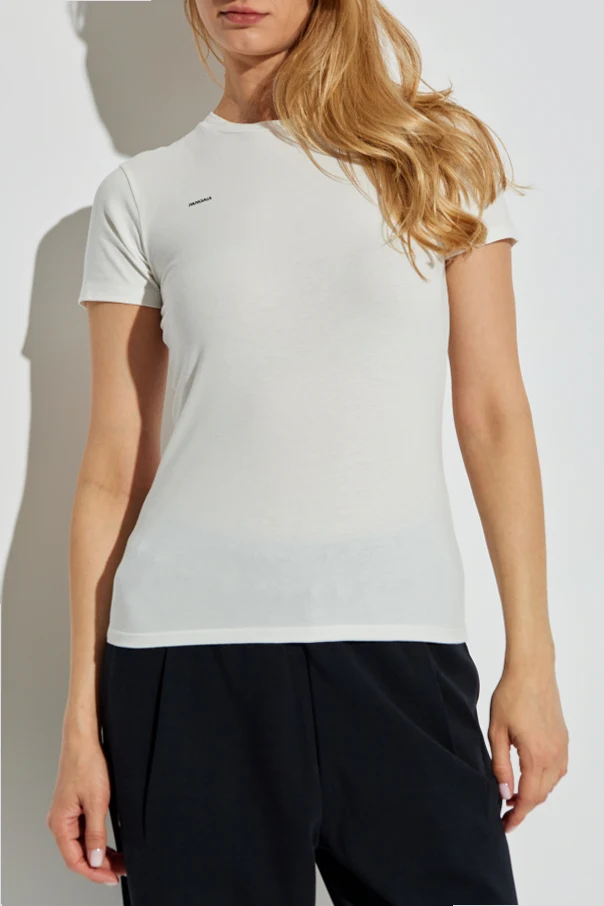 Logo-T-Shirt der Marke Pangaia ist eine raffinierte Wahl für Liebhaberinnen klassischer Eleganz. Gefertigt aus einem außergewöhnlich glatten Material, das die herausragenden Eigenschaften moderner Fasern vereint, besticht es durch sein schneeweißes Erscheinungsbild und eine subtile Struktur, die außergewöhnlichen Tragekomfort garantiert.