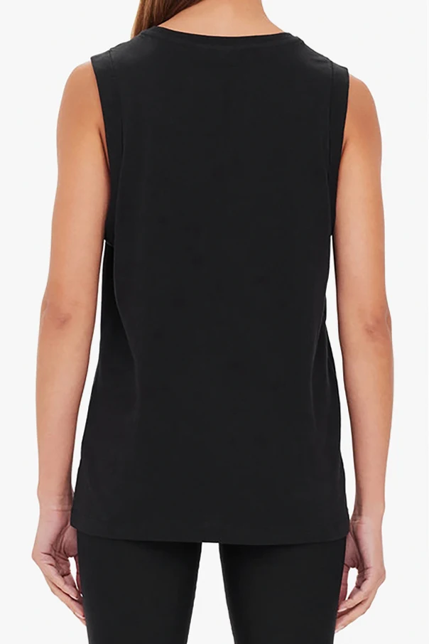Das T-Shirt Jeet ist ein raffiniertes Angebot für Frauen, die subtile Eleganz in sportlicher Ausführung schätzen. Schwarze, glatte Farbe und gerader, lockerer Schnitt ohne Ärmel sorgen für außergewöhnlichen Komfort und uneingeschränkte Bewegungsfreiheit. Charakteristische breite Armausschnitte verleihen Leichtigkeit und einen modernen Ausdruck und unterstreichen die Vielseitigkeit des Modells.