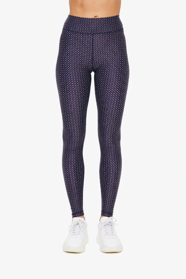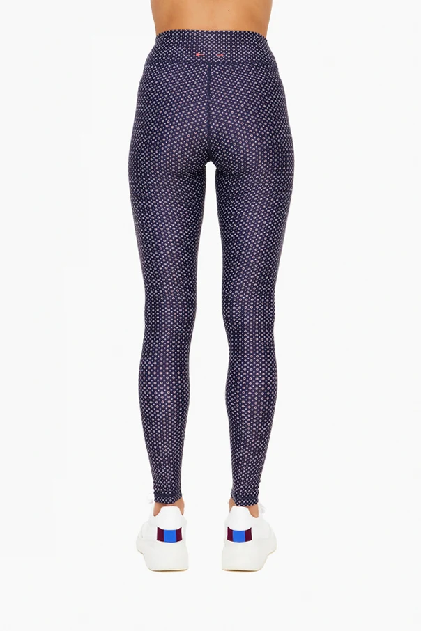 Entdecken Sie den raffinierten Charme der Cavallo -Leggings, die durch ihren klassischen, körpernahen Second-Skin -Schnitt und den hohen Bund, der die Taille betont, begeistern. Das Design fasziniert mit einem regelmäßigen, mikrogeometrischen Muster in Form von Kreisen oder Blumen, das sorgfältig auf tiefdunkelblauem Hintergrund angeordnet ist. Kontrastierende Rot- und Weißtöne verleihen eine einzigartige Note, während die glatte, leicht glänzende Oberfläche des Materials höchste Verarbeitungsqualität widerspiegelt.