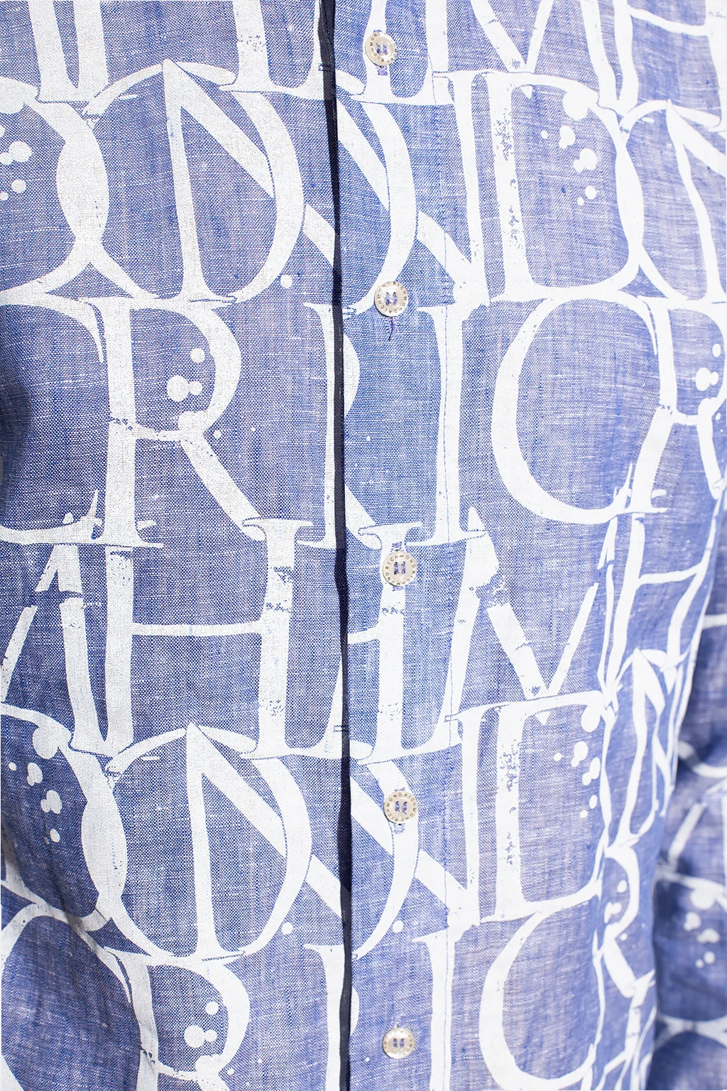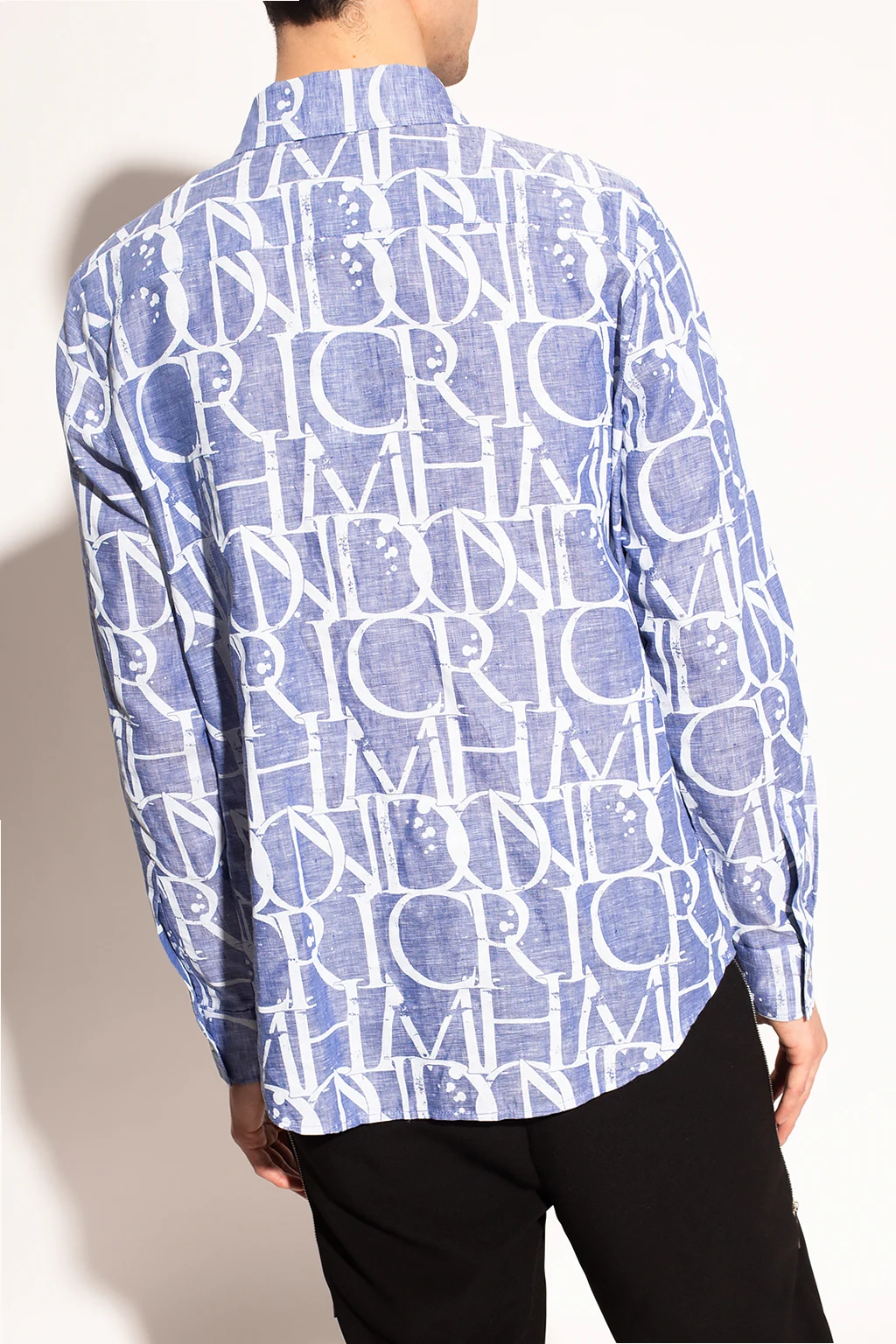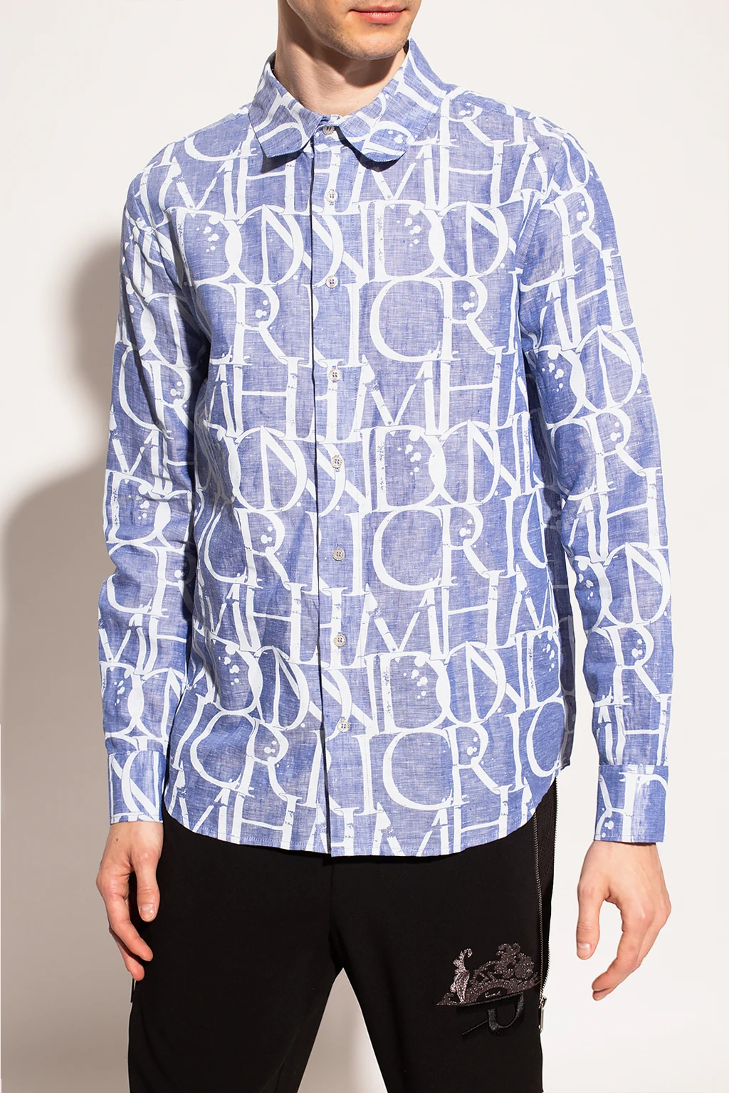 Blue shirt from John Richmond. Crafted from linen, this garment is complete with button fastenings and a printed logo pattern.