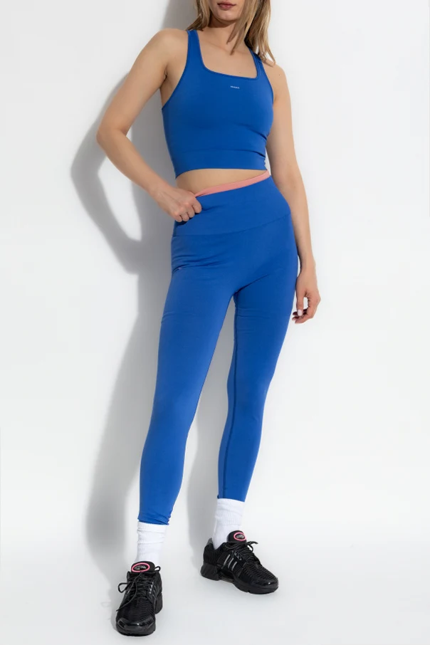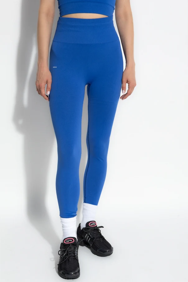 Das leichte, elastische Material schmiegt sich wie eine zweite Haut sanft an die Beine bis zu den Knöcheln an. Der intensive, blaue Farbton und die glatte Oberfläche unterstreichen den einheitlichen Charakter des Modells, während das dezente, weiße Pangaia-Logo am Oberschenkel dem Ganzen einen edlen, minimalistischen Akzent verleiht und die Echtheit des Produkts bestätigt.