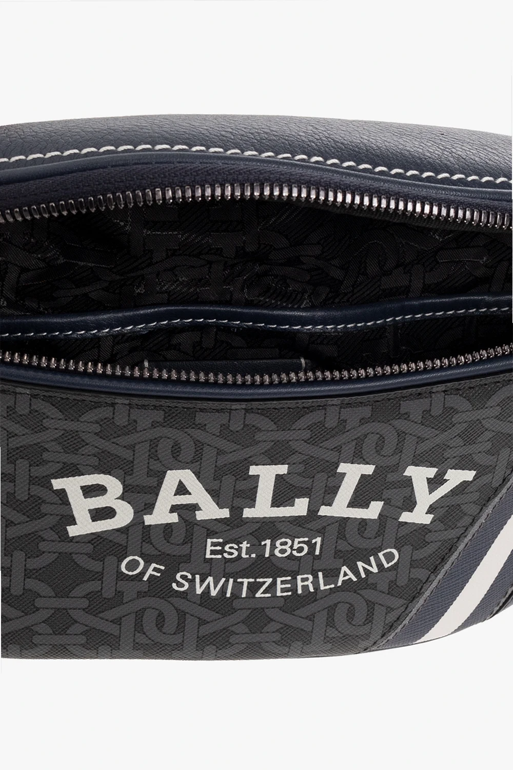 Navy, grey and cream ‘Chatey’ belt bag from Bally. Fastened with a two-way zip, this model features a white logo print, monogram pattern, zipped back pocket, adjustable belt, dark silver-tone metal hardware and one internal compartment with one slip pocket.