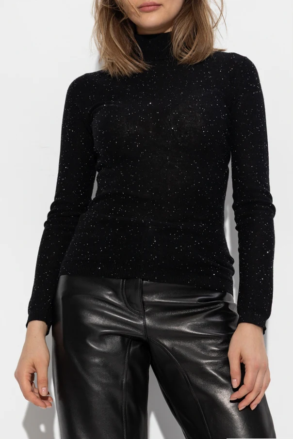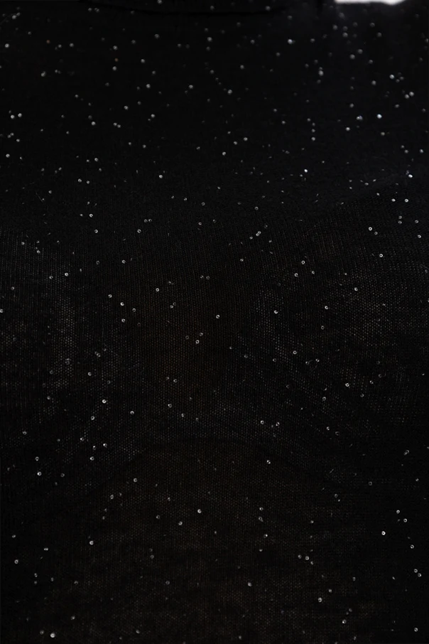 Rollkragenpullover mit schimmernden Pailletten von Fabiana Filippi ist die Quintessenz raffinierter Eleganz. Der sorgfältig taillierte Schnitt mit hohem Stehkragen umschmeichelt dezent die Silhouette und betont die weiblichen Formen. Das gesamte Kleidungsstück ist kunstvoll mit gleichmäßig verteilten, feinen Pailletten verziert, die das Licht sanft reflektieren und dem Design einen edlen Glanz verleihen – ganz ohne übertriebene Extravaganz.