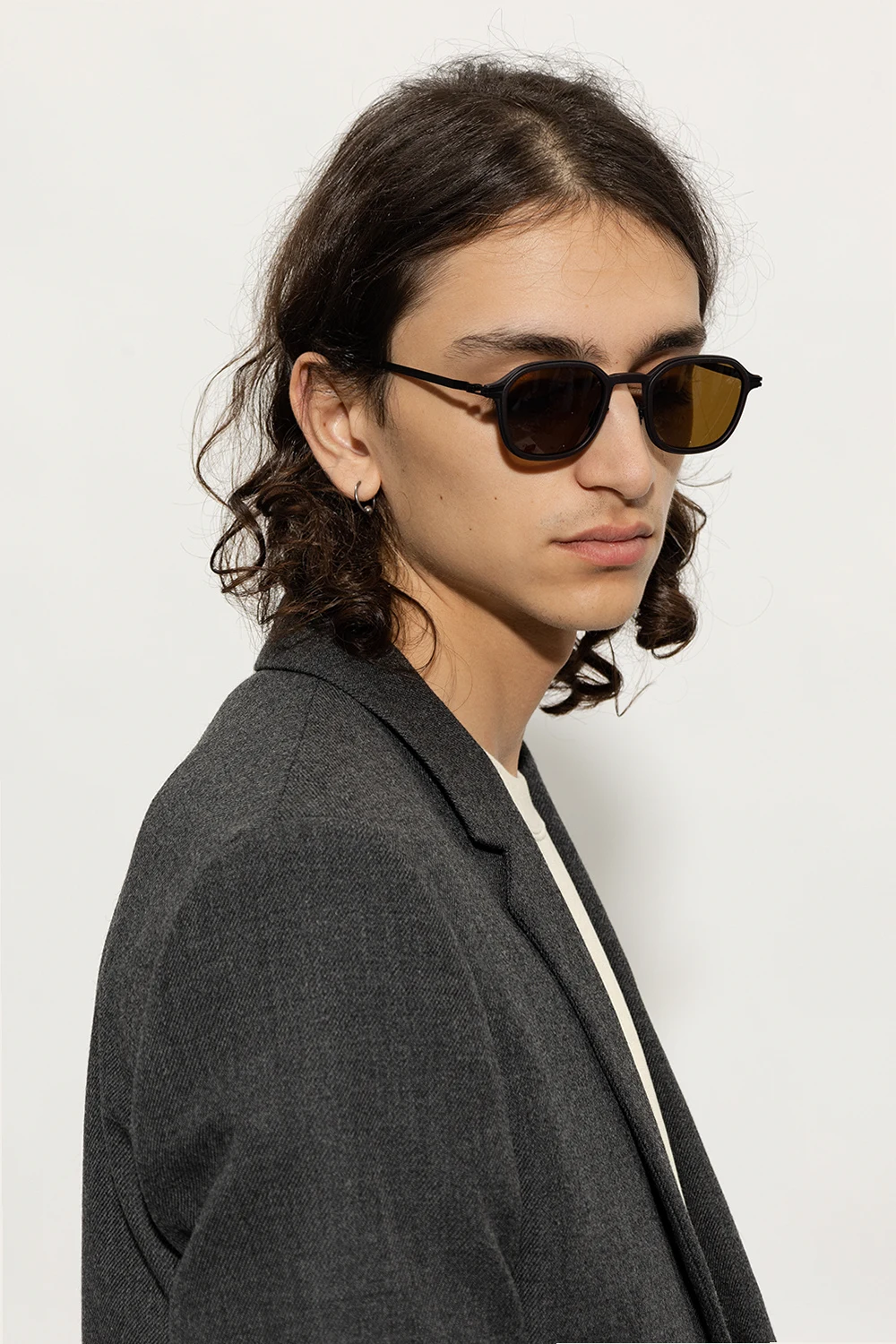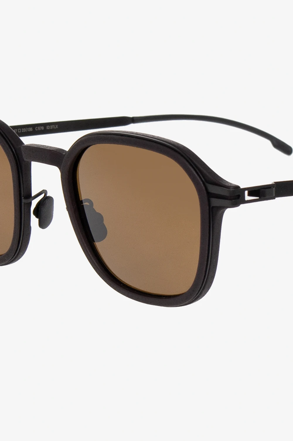 Black ‘Fir’ sunglasses from Mykita, the ‘Mykita Mylon’ collection. Handcrafted in Berlin, this model features curved frames made of durable MYLON and trimmed with stainless steel, thin temples with a patented screwless spiral hinge, silicone temple tips and adjustable nose pads and brown Polarized Pro Tajima Urethane™ lenses with 100% defence from UV rays as well as maximum glare protection. Case included.