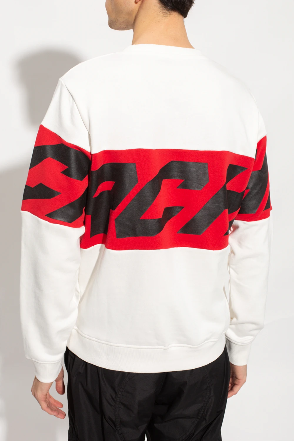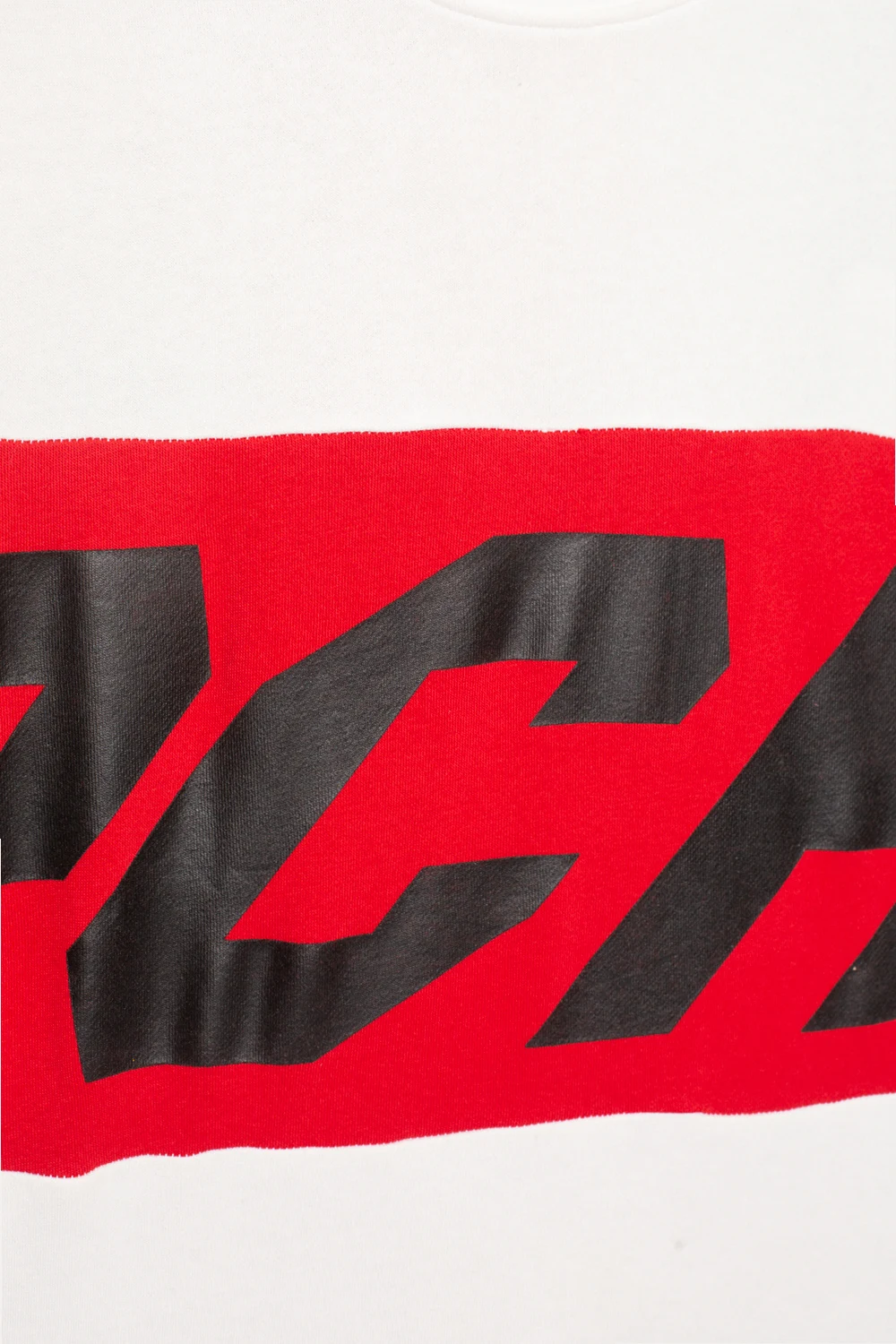 White crewneck sweatshirt from John Richmond. Made of cotton, this garment is enriched by a black logo print and ribbed trims at the neck, hem and cuffs.