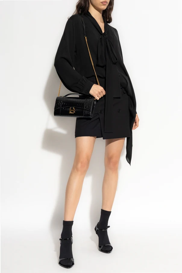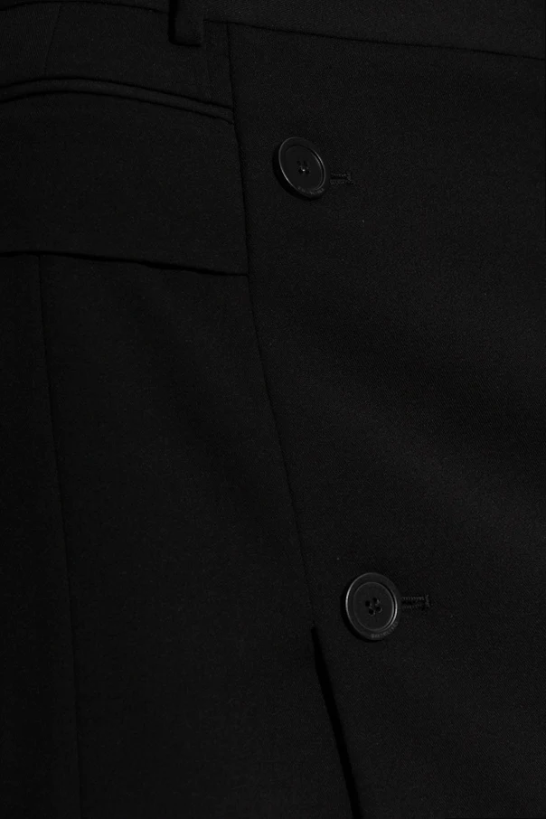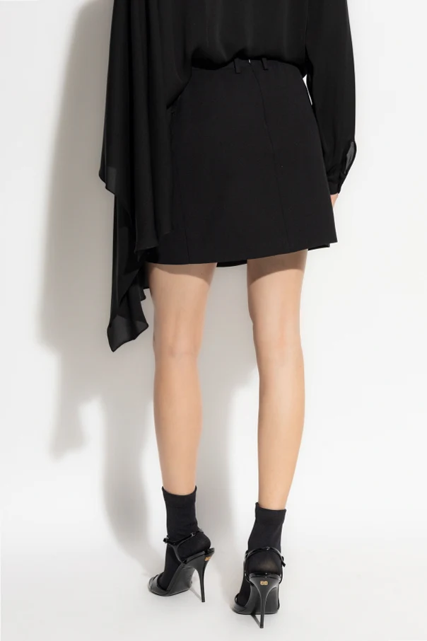 Der Rock mit dekorativen Knöpfen der Marke Balenciaga ist ein Ausdruck meisterhafter Schneiderei im Geist zeitgenössischer Eleganz. Die gerade, leicht ausgestellte Mini-Länge erinnert an den klassischen Blazerstil und vereint auf subtile Weise Zeitlosigkeit mit Modernität. Der glatte, matte Stoff – eine sorgfältig ausgewählte Mischung aus Wolle und Viskose – bildet einen edlen Hintergrund für das markante Detail von vier großen, dekorativen Knöpfen, die in zwei vertikale Reihen angeordnet sind und klar vom Double-Breasted-Stil inspiriert wurden. Die angedeuteten Pattentaschen unterstreichen die Intention des Designers, bei dem Details zum Manifest raffinierten Geschmacks werden. Das einzigartige Cupro-Futter rundet das Ganze ab und sorgt für außergewöhnlichen Tragekomfort.
