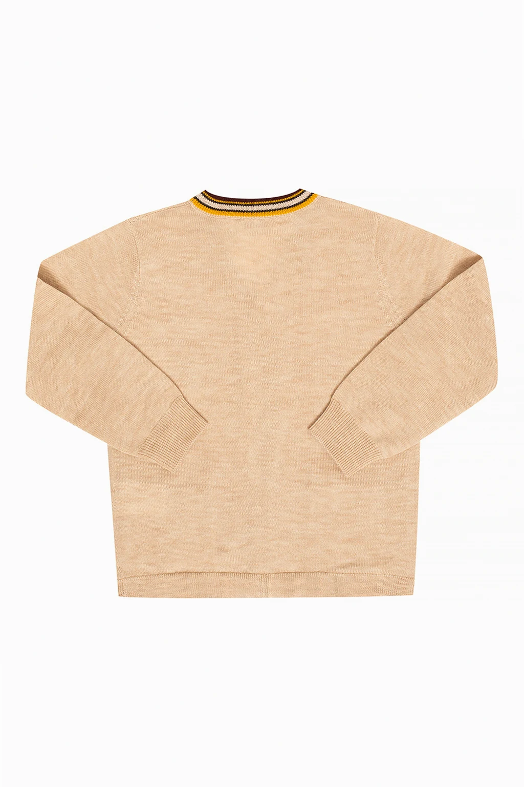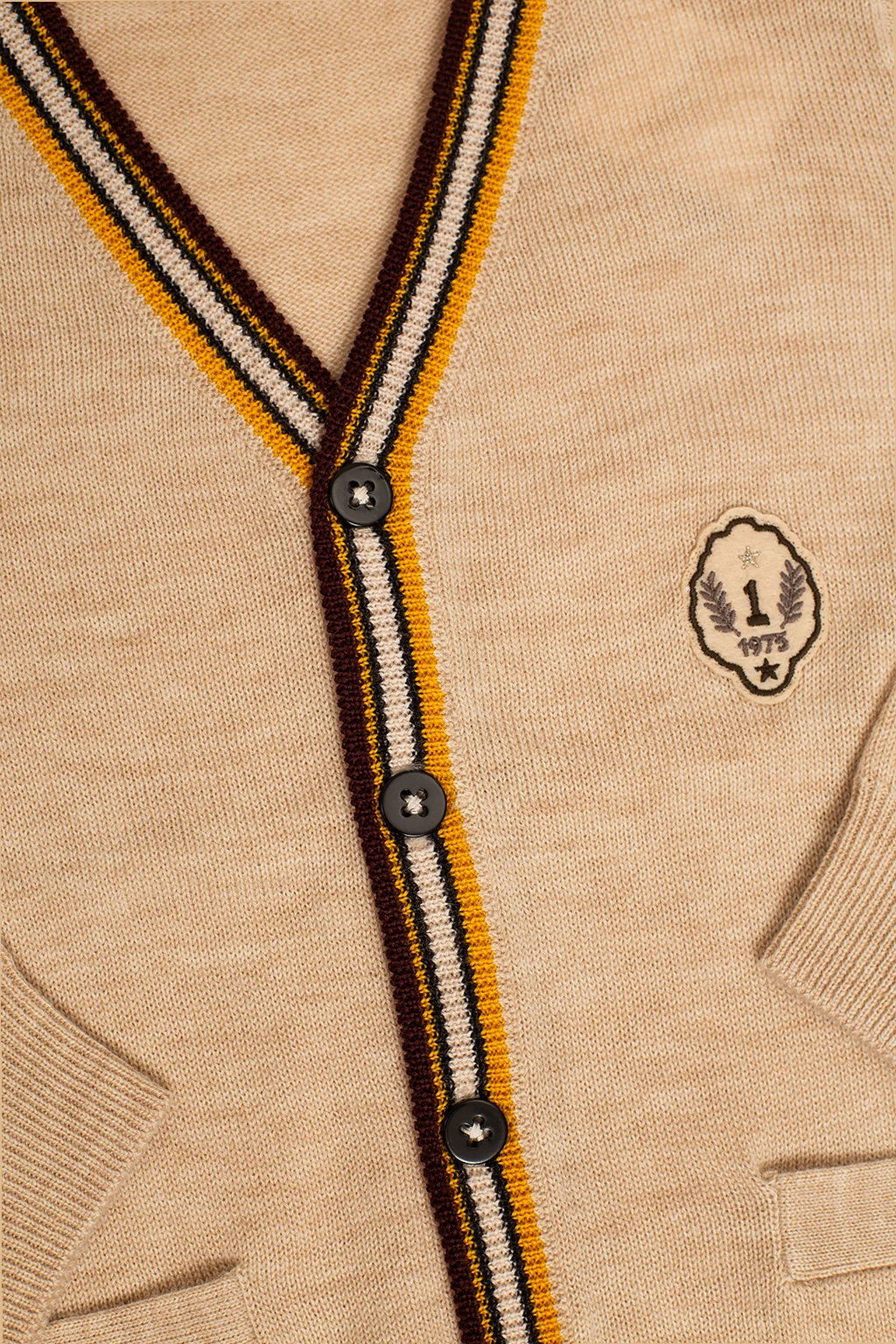 Beige cardigan from Bonpoint Kids. Crafted from wool, this style fastens via buttons and features a branded patch, two slip pockets and long sleeves.