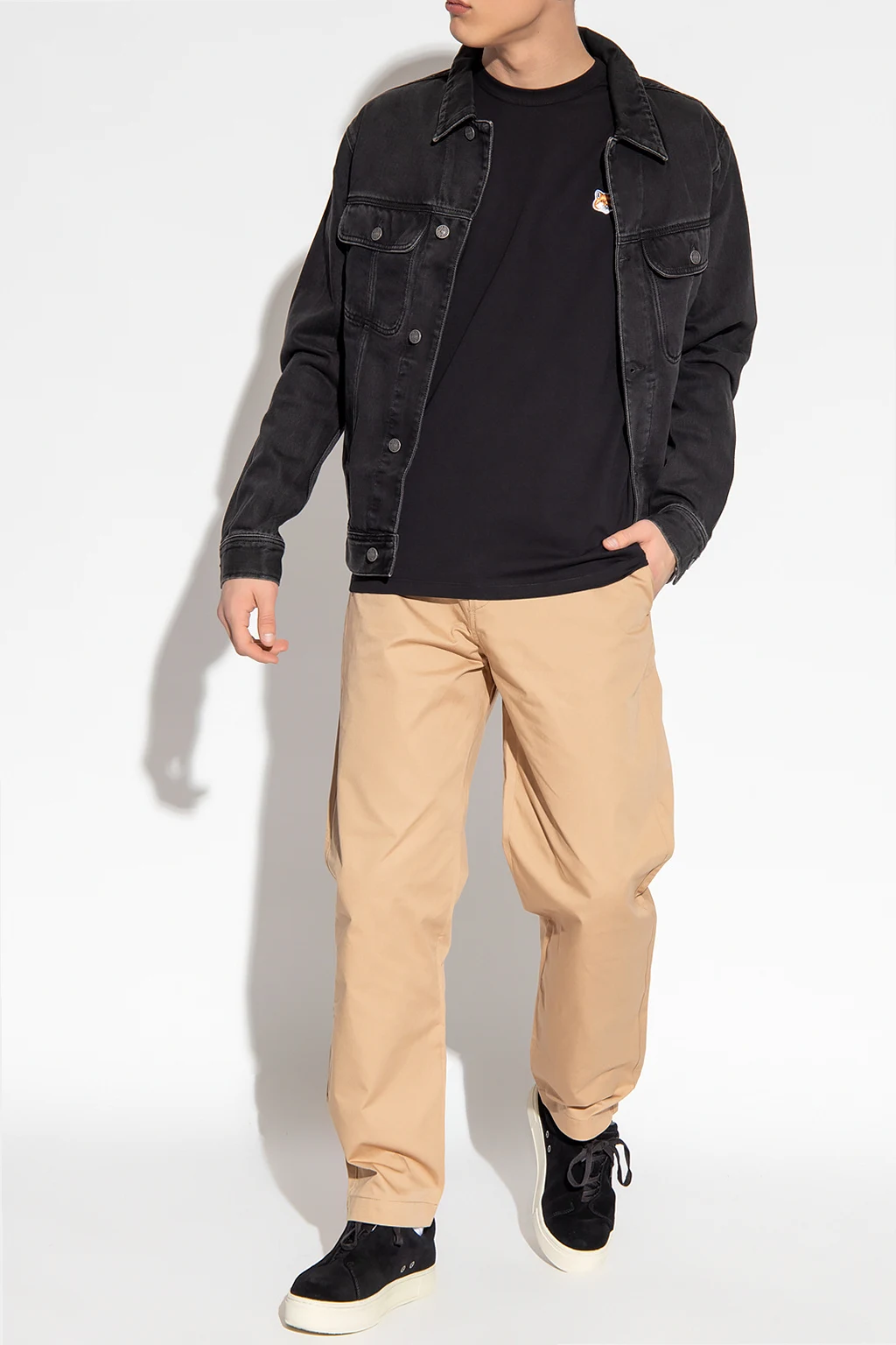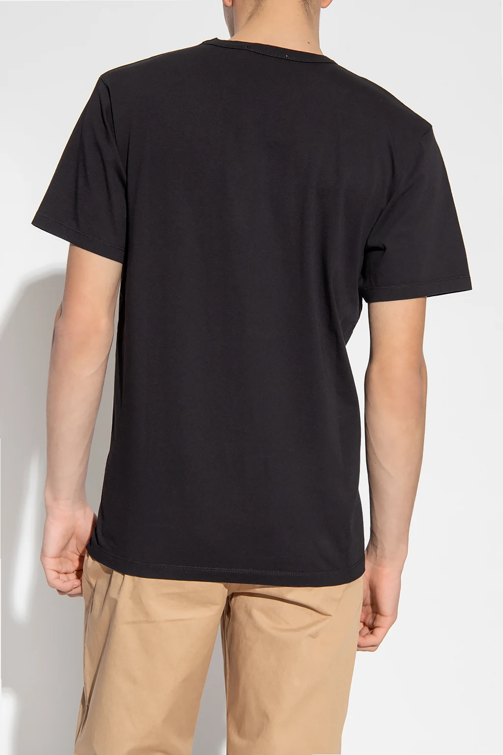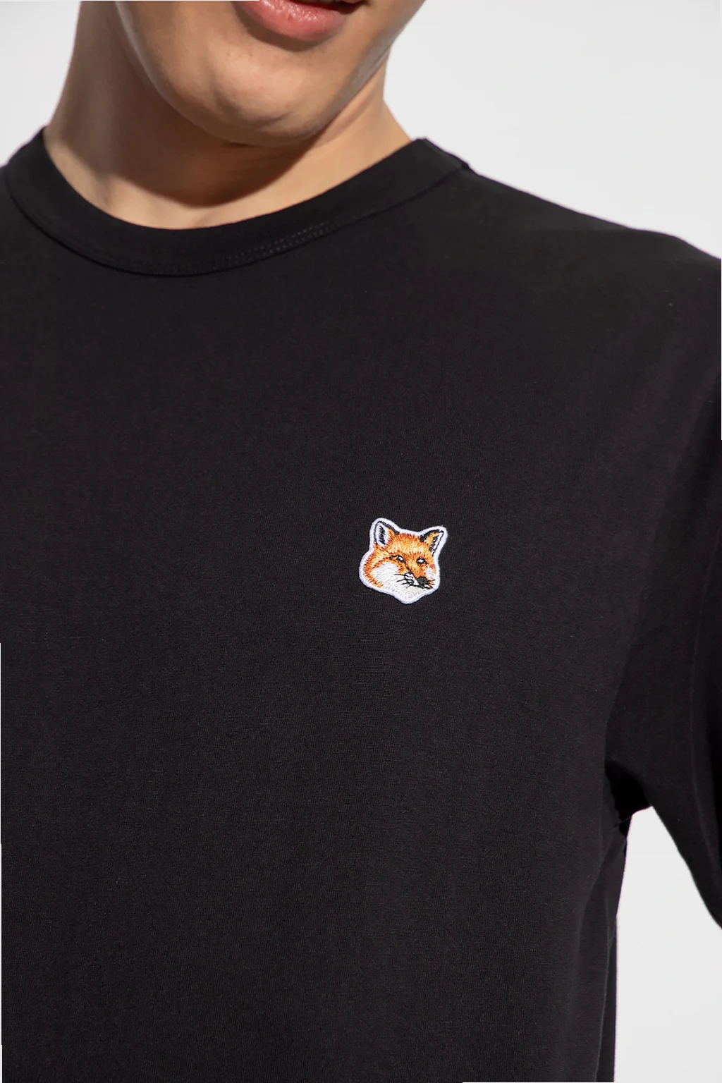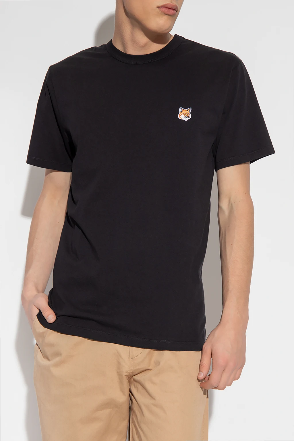 Black crewneck T-shirt from Maison Kitsune. Crafted from cotton, this style features short sleeves, an elasticated collar and a logo patch for brand recognition.