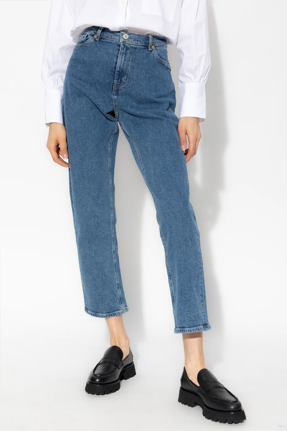 Blue jeans from PS Paul Smith. Falling with straight legs, this pair features a zip fly with a button, classic five pockets and a brown patch with an embossed logo at the back.