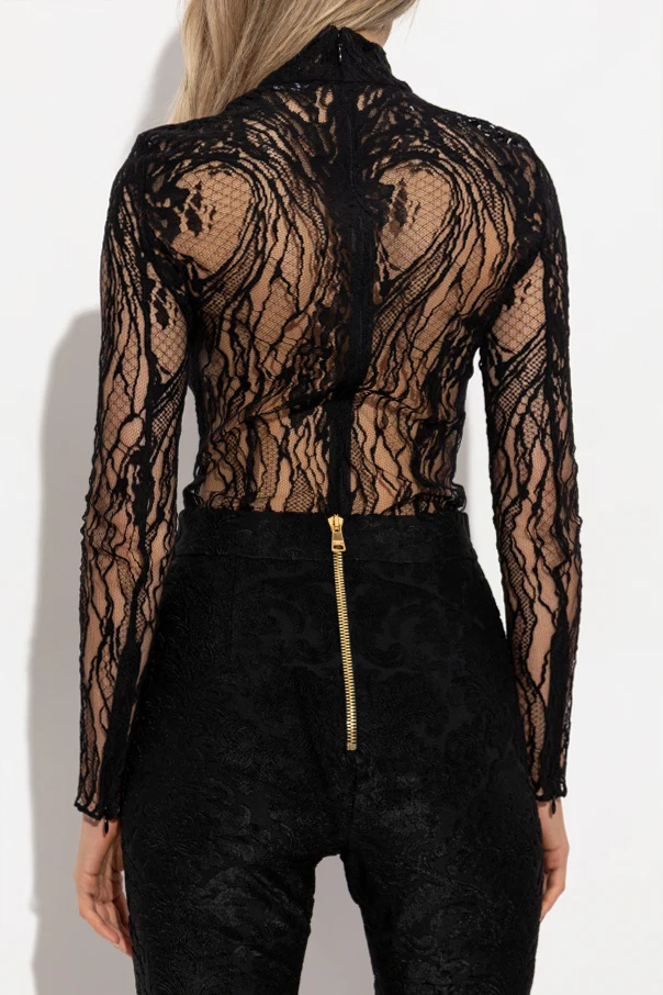 Das auf Netzbasis gefertigte Material mit luxuriöser Spitze vereint die Leichtigkeit und das handwerkliche Können, das die Meister von Balmain auszeichnet. Präzise Verarbeitung, harmonische Formgebung und der Verzicht auf überflüssige Verzierungen unterstreichen die Exklusivität dieses Produkts, das sich perfekt für Frauen eignet, die einen modernen Ausdruck und außergewöhnliche Ästhetik schätzen.