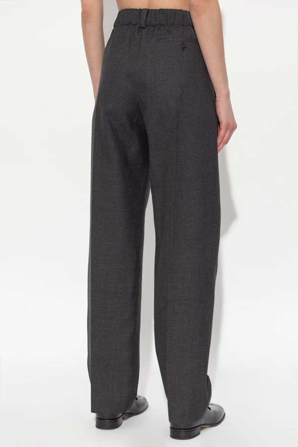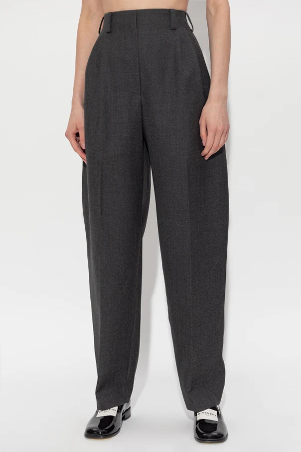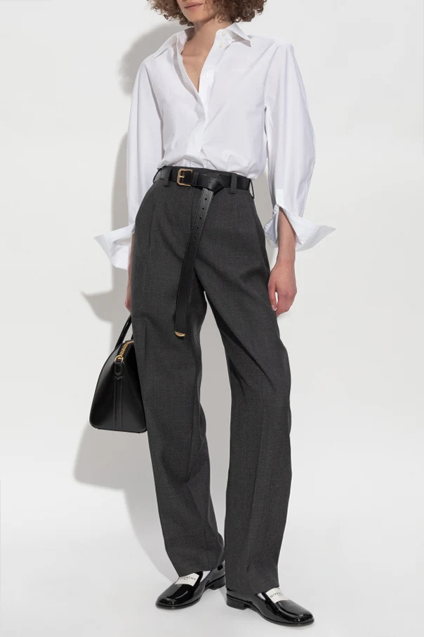 Wollhose mit hohem Bund von Givenchy ist die Verkörperung raffinierter Modernität und aristokratischer Schlichtheit. Das minimalistische Design wird durch einen einfarbigen, glatten Stoff mit klassischer, matter Webart unterstrichen, wie sie für exklusive Anzugmode typisch ist.
