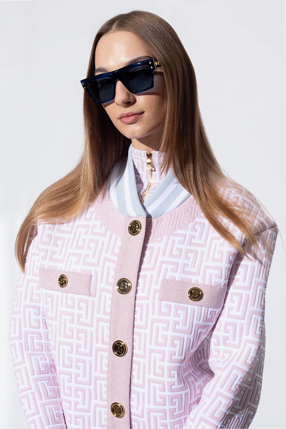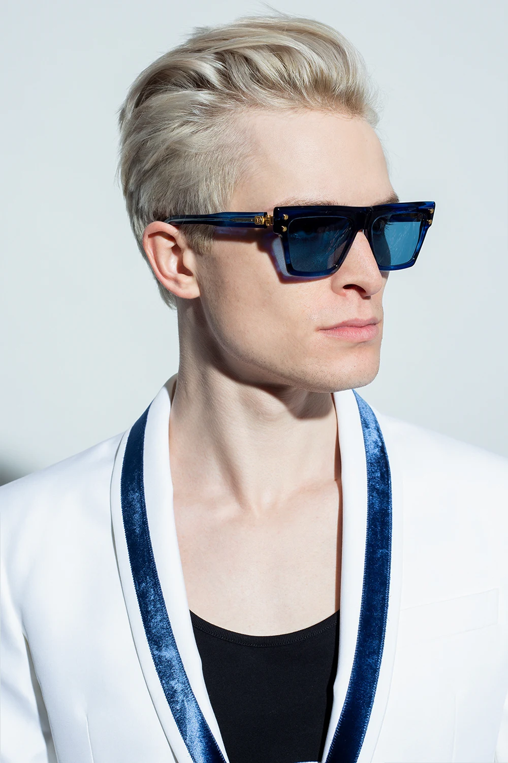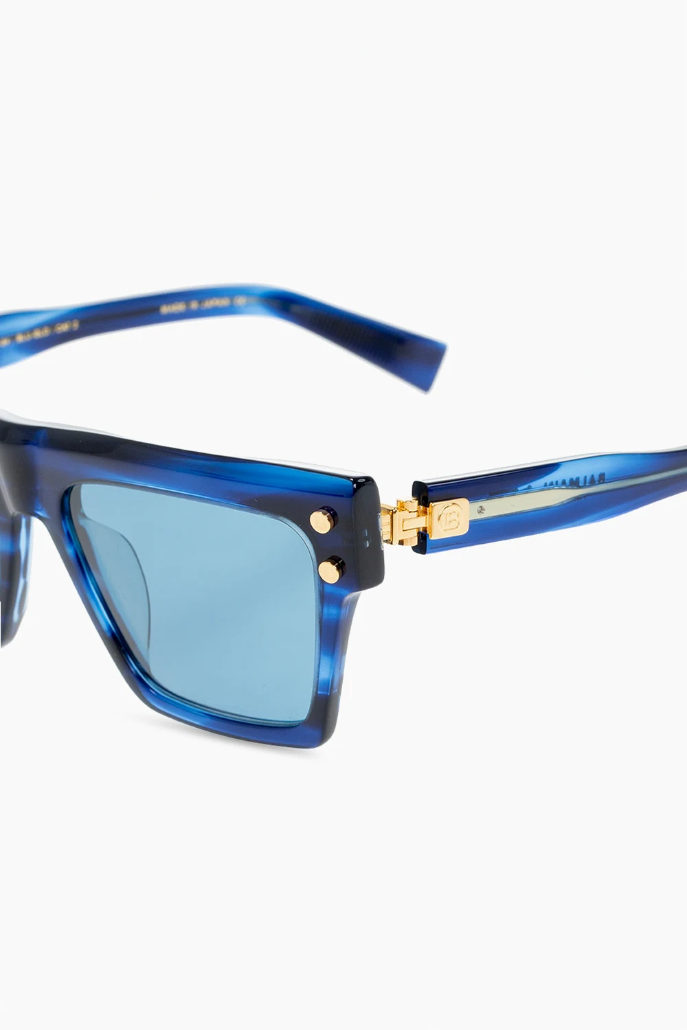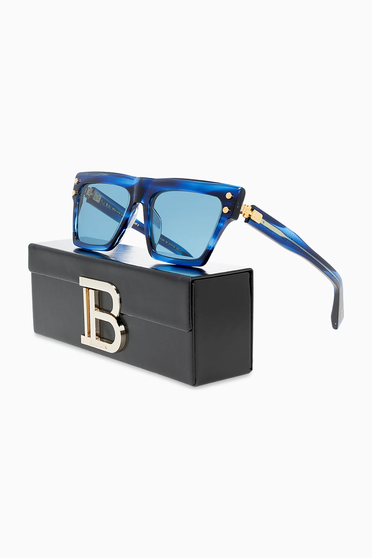 Navy blue and blue sunglasses from Balmain. Enriched by gold-tone logo plaques, this pair features certified blue and purple lenses with 100% UVA/UVB and UVC protection. Comes with a silver-tone branded leather case.