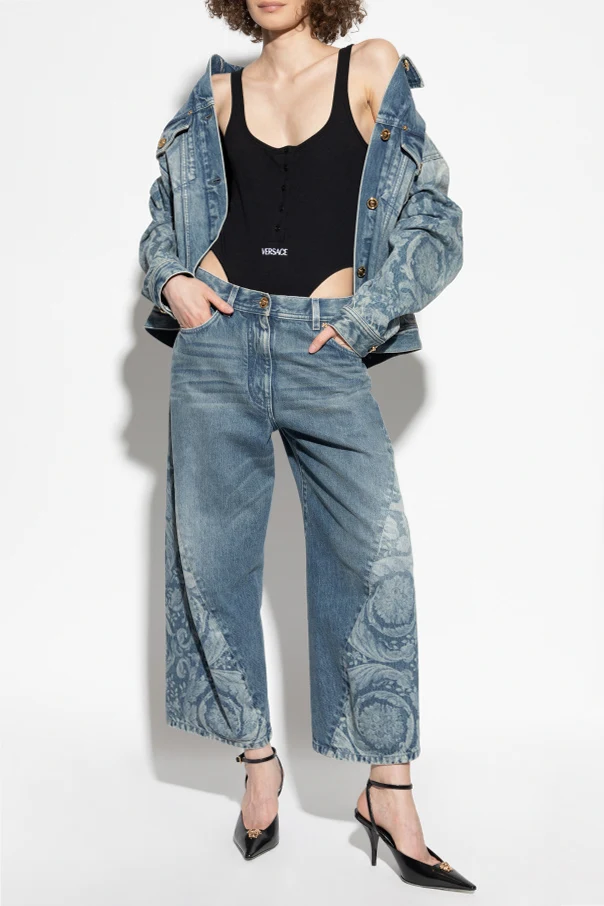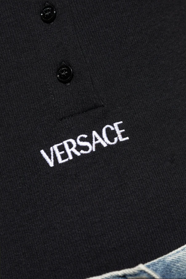 Exklusive Details – dekorative Knöpfe und das aufgestickte Versace-Logo.