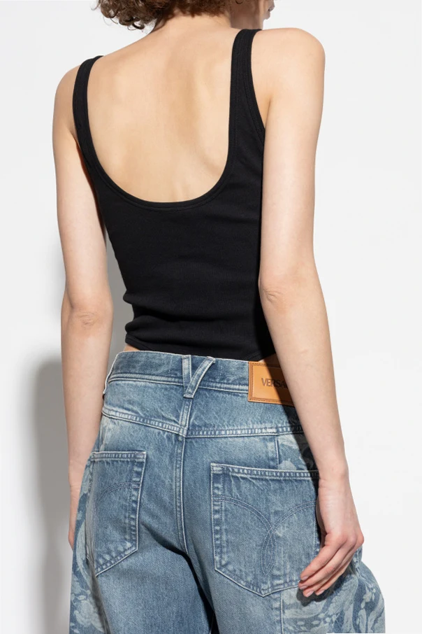 Body mit aufgesticktem Logo der Marke Versace ist die Quintessenz von Luxus in einer minimalistischen Ausführung. Das Modell mit klassischer, figurbetonter Linie schmeichelt der Silhouette und betont ihre natürliche Form. Breite Träger und Scoop-Ausschnitte sowohl vorn als auch hinten verleihen dem Design eine harmonische Leichtigkeit.