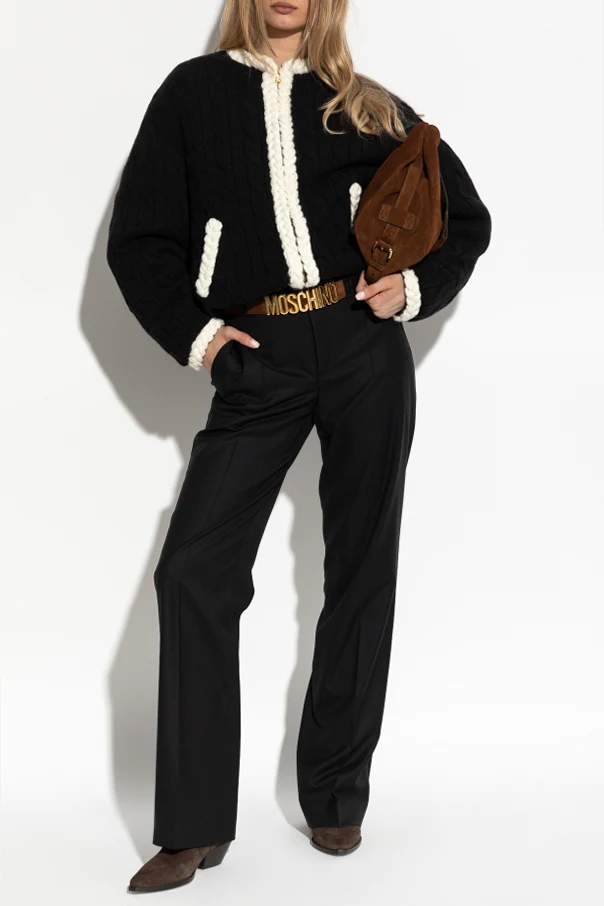 Ausgesuchte Details wie die Steppnähte entlang der Beine, Gürtelschlaufen sowie der verdeckte Reißverschluss mit Knopfverschluss zeugen vom handwerklichen Können, das für Moschino charakteristisch ist. Die Rückseite wird durch eine praktische Knopftasche und eine diskrete, angedeutete zweite Tasche ergänzt; das Fehlen von kontrastierenden Nähten unterstreicht den außergewöhnlich hochwertigen Eindruck.
