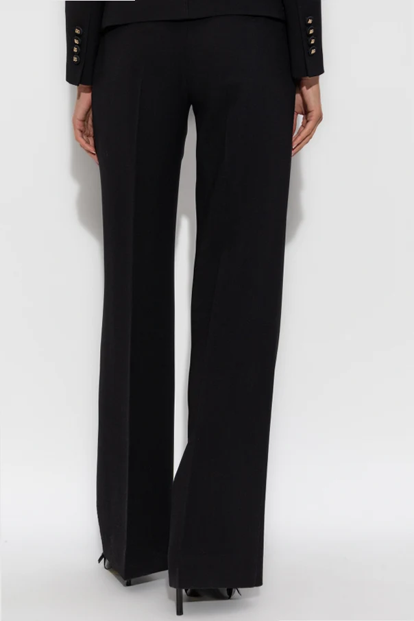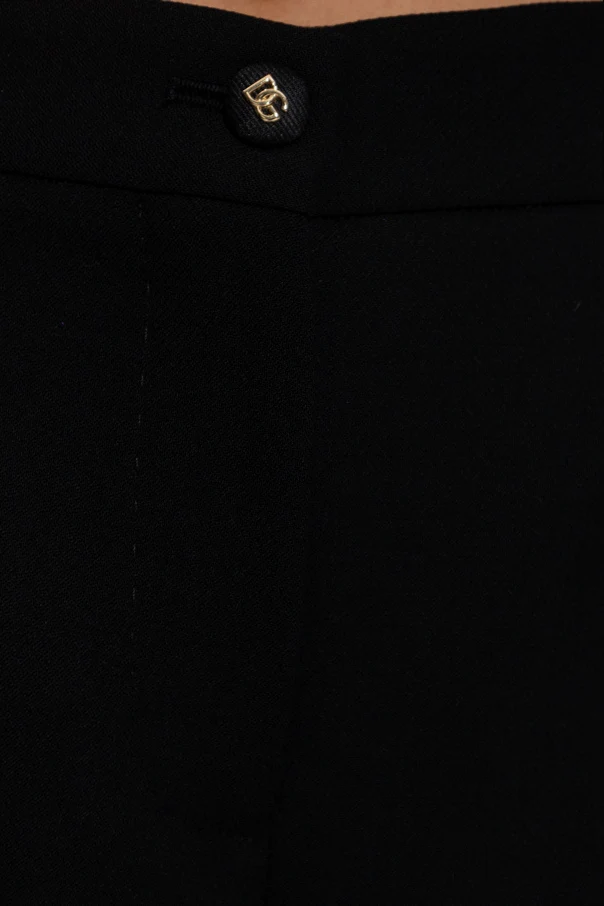 Wollhose mit Bügelfalte von Dolce & Gabbana ist die Quintessenz moderner Eleganz und zeitloser Raffinesse. Sie besticht durch ihren klassischen, geraden Schnitt mit mittelhohem Bund und eine perfekt ausgearbeitete Bügelfalte, die den äußerst formellen und edlen Charakter unterstreicht. Der glatte, schwarze Stoff aus hochwertigster Wolle umschmeichelt sanft die Silhouette und bietet höchsten Tragekomfort sowie einen unverwechselbaren visuellen Effekt.