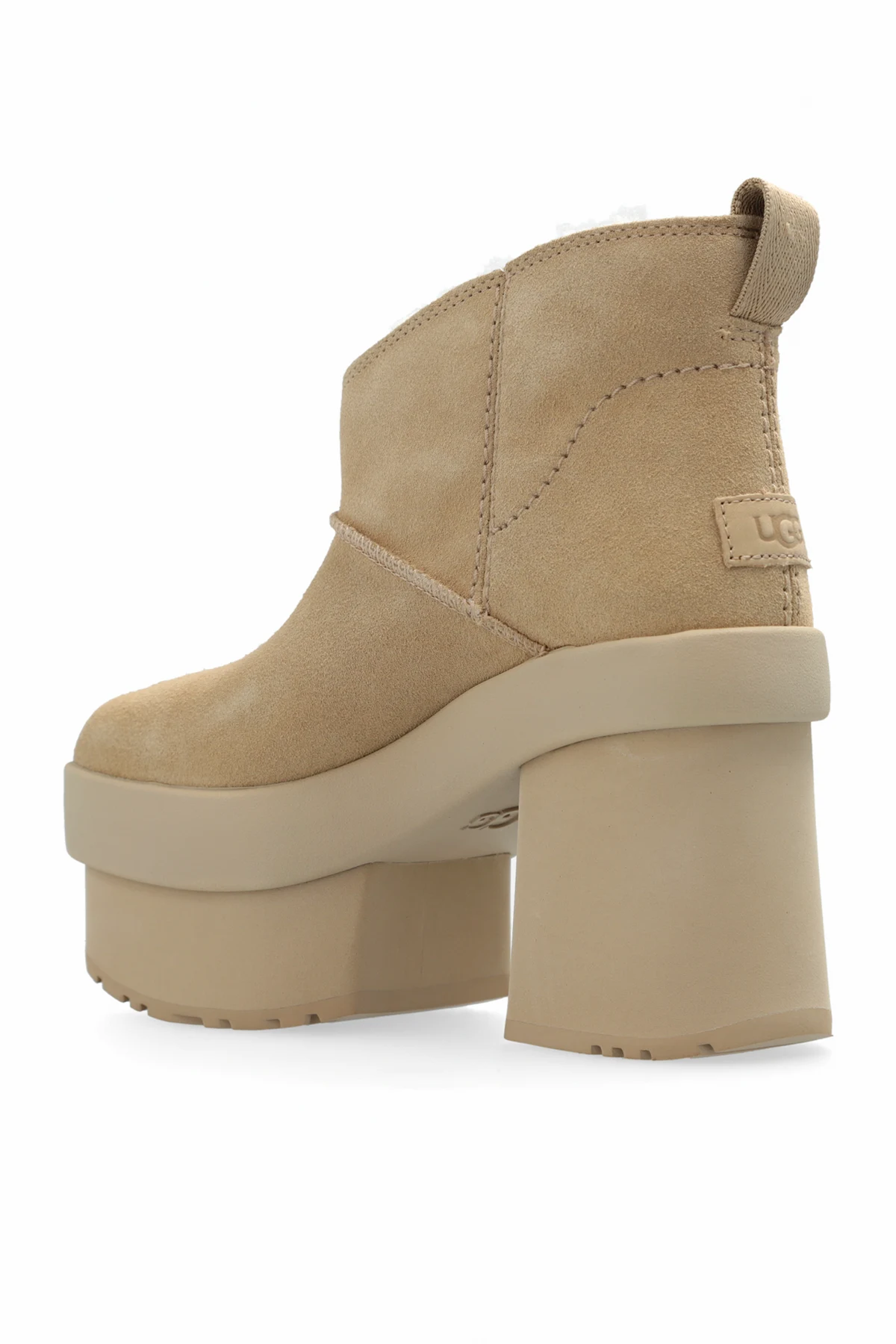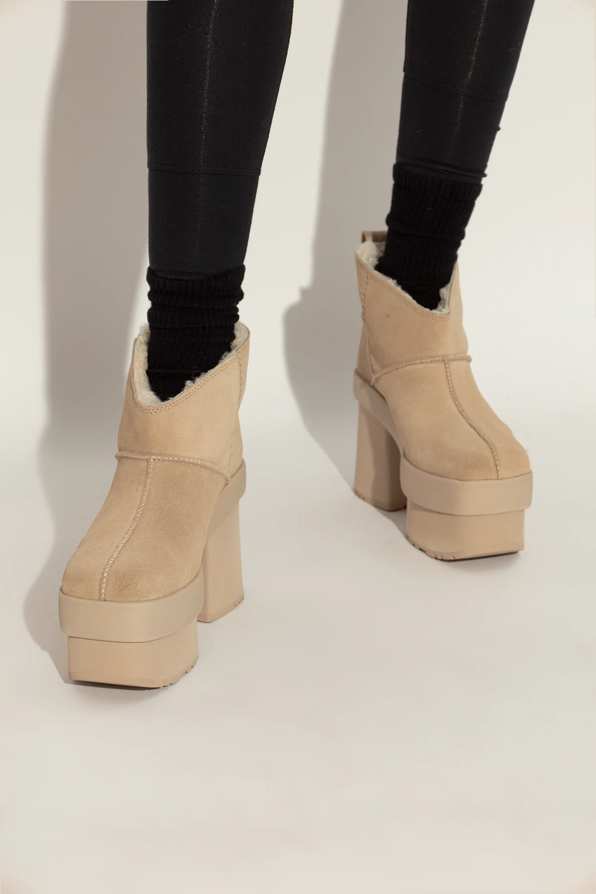 Wir präsentieren die außergewöhnlichen HIGH-HEELED SHOES New Heights Platform vom renommierten Designer UGG . Diese beigen HIGH-HEELED SHOES aus der exklusiven Kollektion zeichnen sich durch ihre massive Form mit hoher Plattform und dickem Absatz aus. Der kurze Schaft, der bis zum Knöchel reicht, die abgerundete Spitze und die dezenten Nähte verleihen ihnen einen unverwechselbaren Charme.