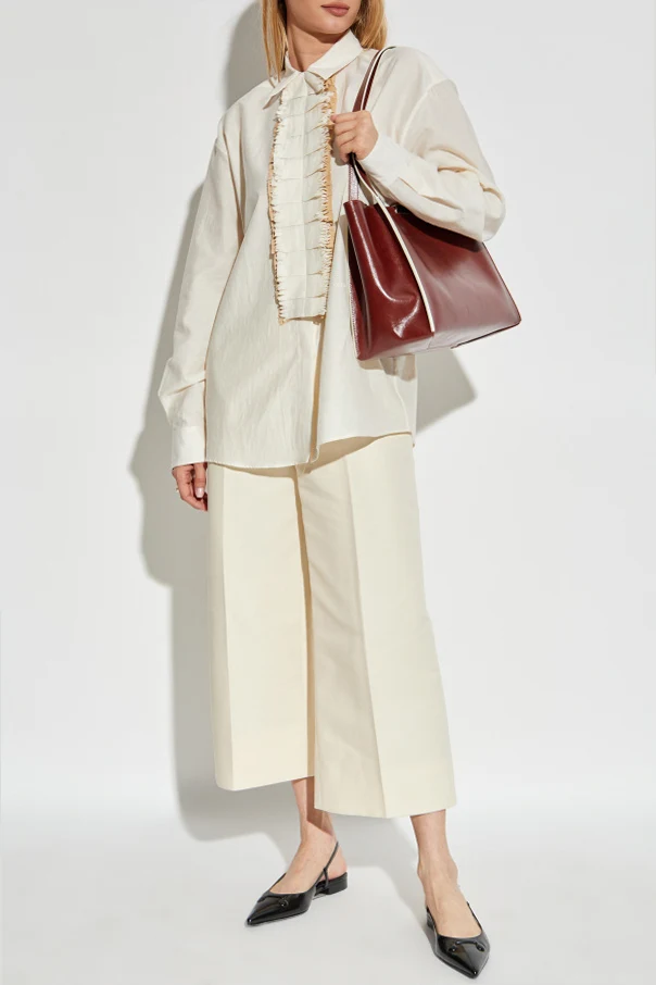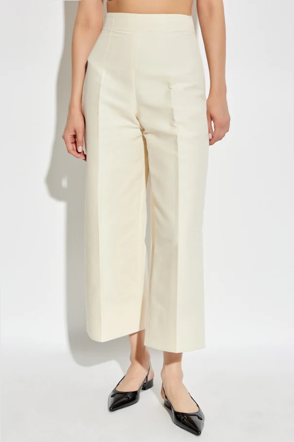 Bügelfaltenhose der Marke Marni ist die Quintessenz raffinierten Chics und moderner Eleganz. Das Modell in Creme strahlt zeitlose Anmut aus – dank leicht ausgestellter, weiter Culotte-Beine, die die feminine Silhouette betonen. Der klassische, hohe Bund sowie die präzise gearbeitete Taillenlinie unterstreichen perfekt die Proportionen und garantieren Tragekomfort sowie ein makelloses Erscheinungsbild.
