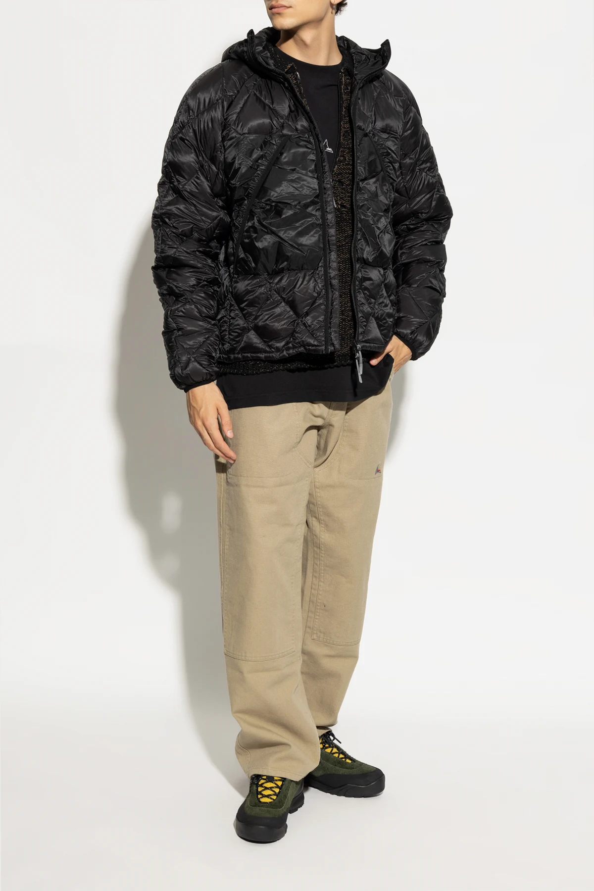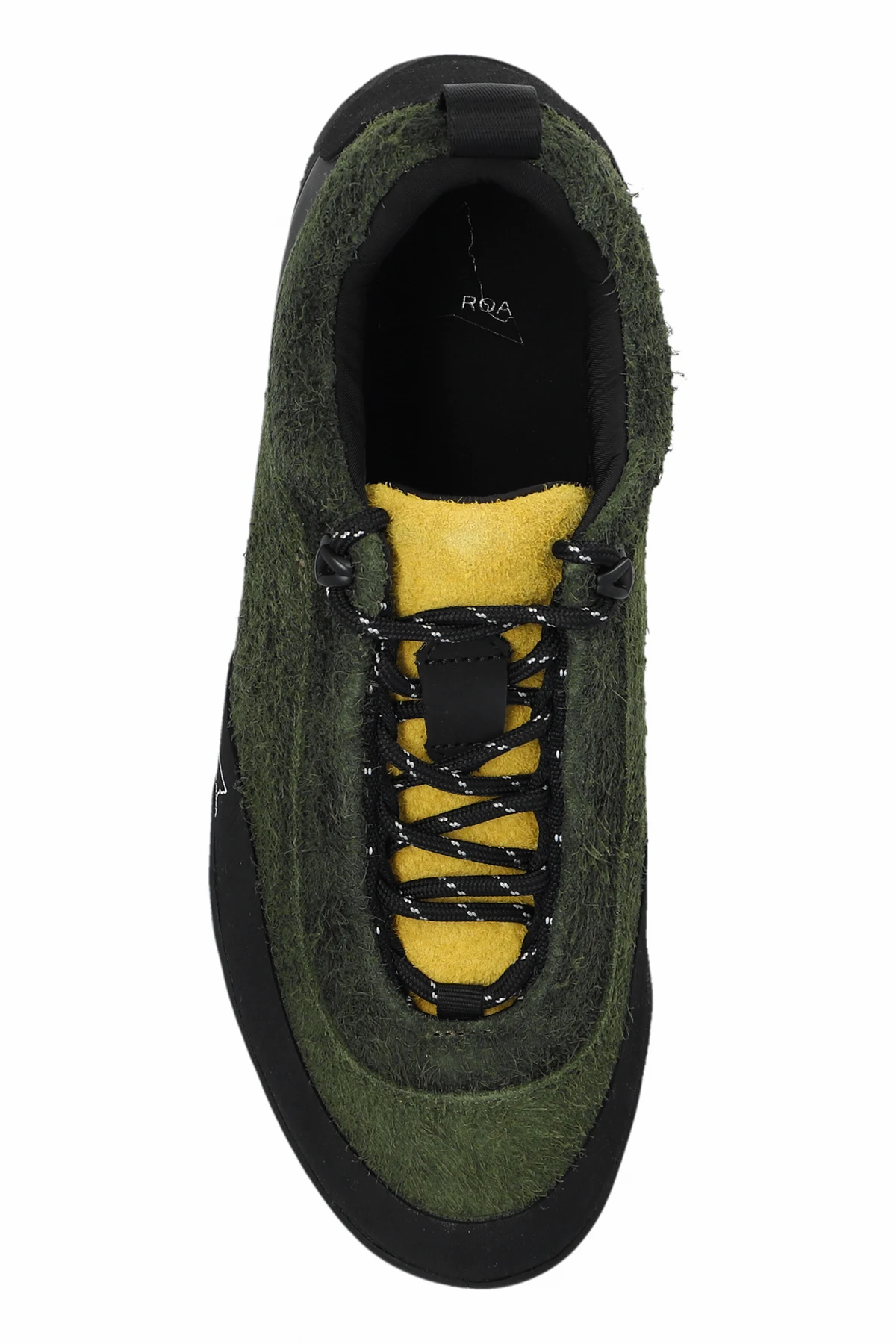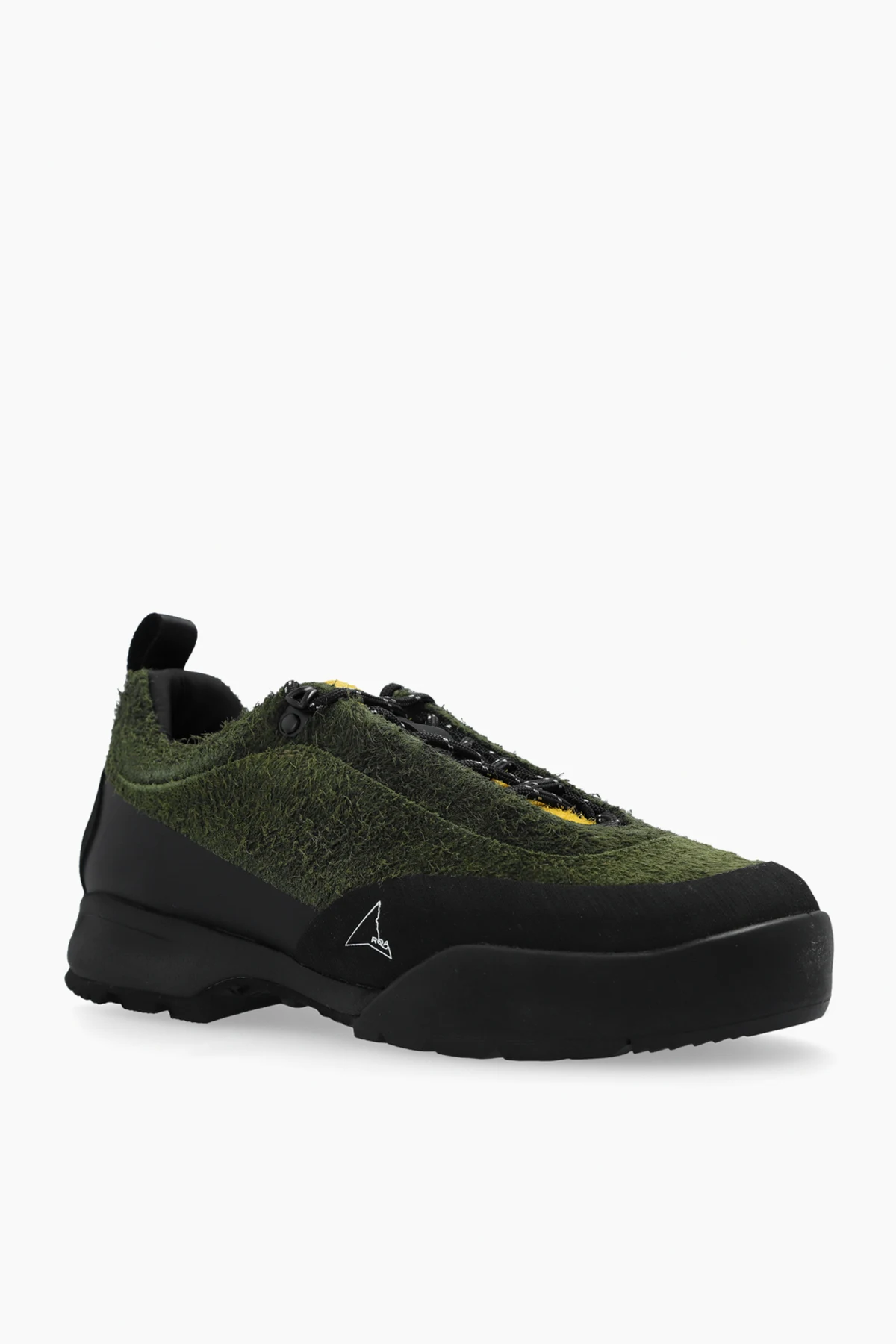 Charakteristische Details wie das seitliche Designerlogo in Form eines Dreiecks und die Lasche an der Rückseite des Schuhs erleichtern das Anziehen und verleihen Stil. Kontrastierende schwarze Schnürsenkel mit gelben Elementen sowie das schwarze Innere mit gelber Zunge betonen den exklusiven Charakter des Produkts.