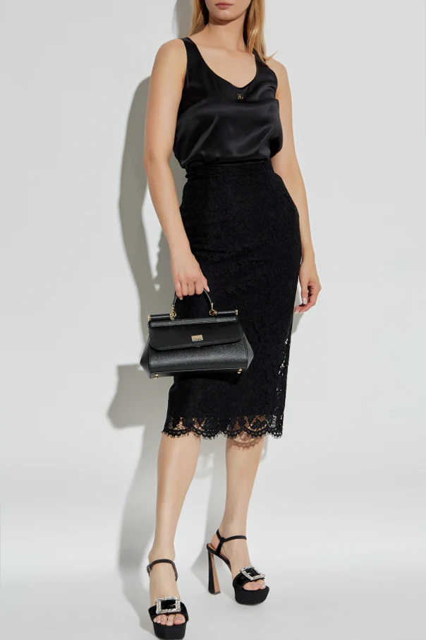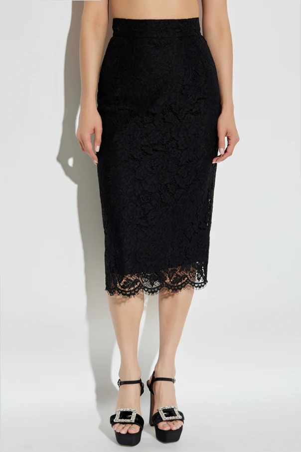 Spitzenrock von Dolce & Gabbana ist ein außergewöhnliches Beispiel für die Meisterschaft italienischer Designer, die das Konzept von Eleganz neu definieren. Dieses exklusive Modell in Midi-Länge betont dezent die feminine Taille und verläuft harmonisch nach unten, wodurch eine raffinierte Silhouette entsteht.
