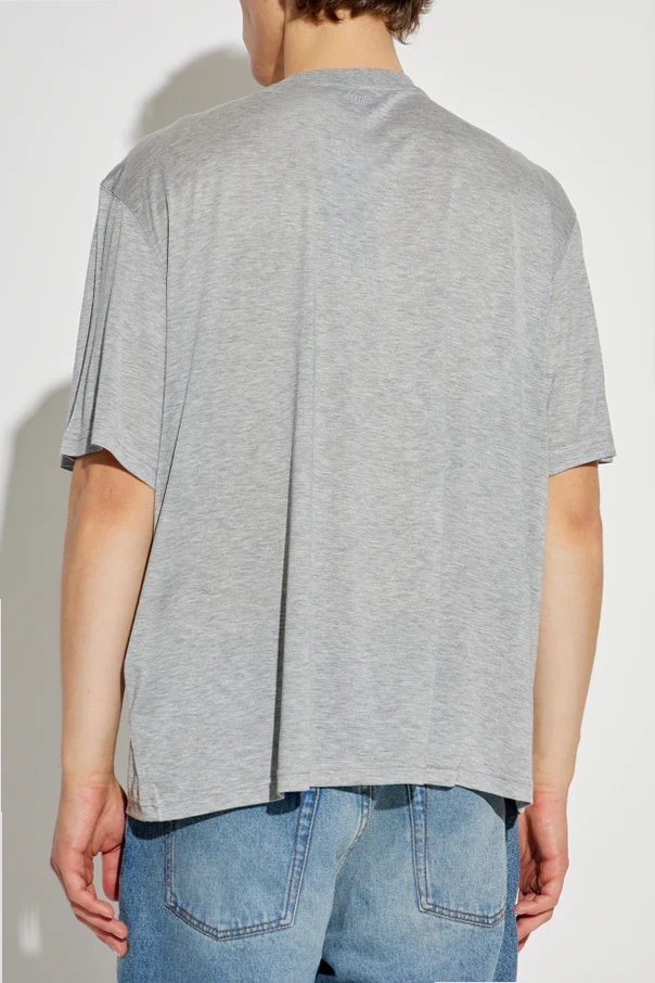 Logo-T-Shirt der Marke Ami Alexandre Mattiussi verkörpert die Quintessenz der Pariser Eleganz und des mühelosen Lebensstils. Der klassische, leicht oversized Schnitt mit kurzen Ärmeln und rundem Ausschnitt vereint zeitlose Vielseitigkeit mit Minimalismus. Dieses Modell besteht aus hochwertigem, besonders weichem Jersey mit einem Anteil an Viskose und Seide und begeistert durch seine feine, subtile Struktur sowie außergewöhnliche Weichheit.