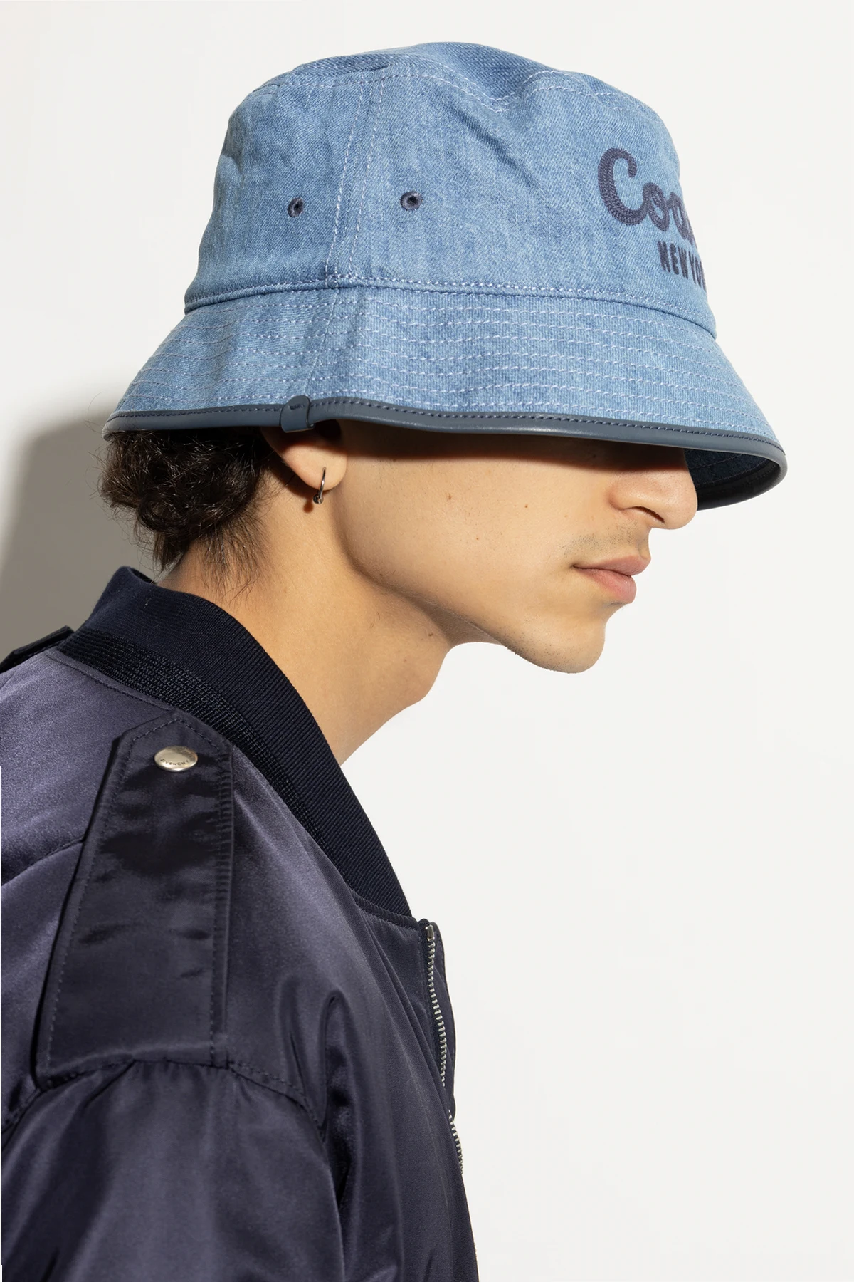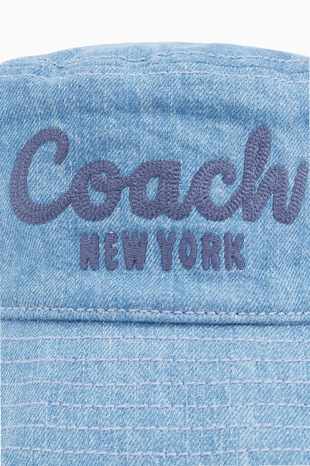 Auf der Vorderseite des Hutes befindet sich ein großes, gesticktes Coach New York -Logo in einem dunkleren Blauton, das das Prestige der Marke unterstreicht und ihm einen charakteristischen Look verleiht. Der unisex Charakter des Hutes macht ihn zu einem idealen Accessoire sowohl für Frauen als auch für Männer.
