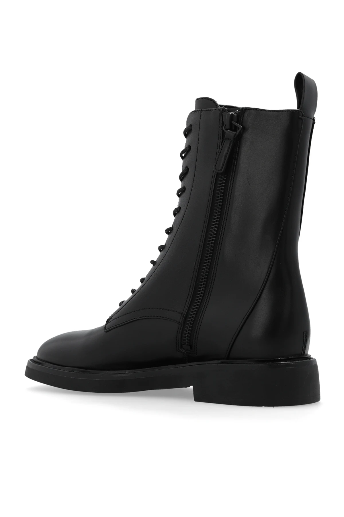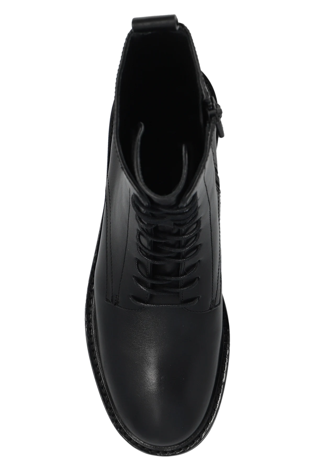 Black ‘Double T’ combat boots from Tory Burch. Made from calf leather, this lace-up model sits on a black rubber sole and features a side zipper accompanied with a tactile logo. Comes with swappable shoelaces.