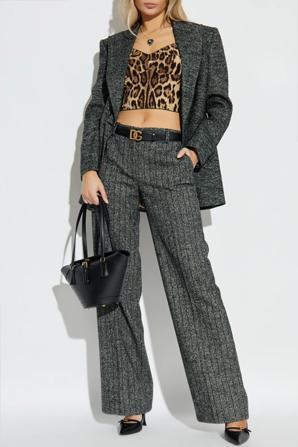 Fischgrät-Blazer aus der exklusiven Kollektion des renommierten Labels Dolce & Gabbana ist eine erlesene Interpretation zeitloser Klassik. Das Modell präsentiert sich in einem edlen Grauton, der dezent durch hellere und dunklere Fäden akzentuiert wird, und ist mit dem ikonischen Fischgrätmuster – einem Symbol für Eleganz und beständigen Stil – veredelt.