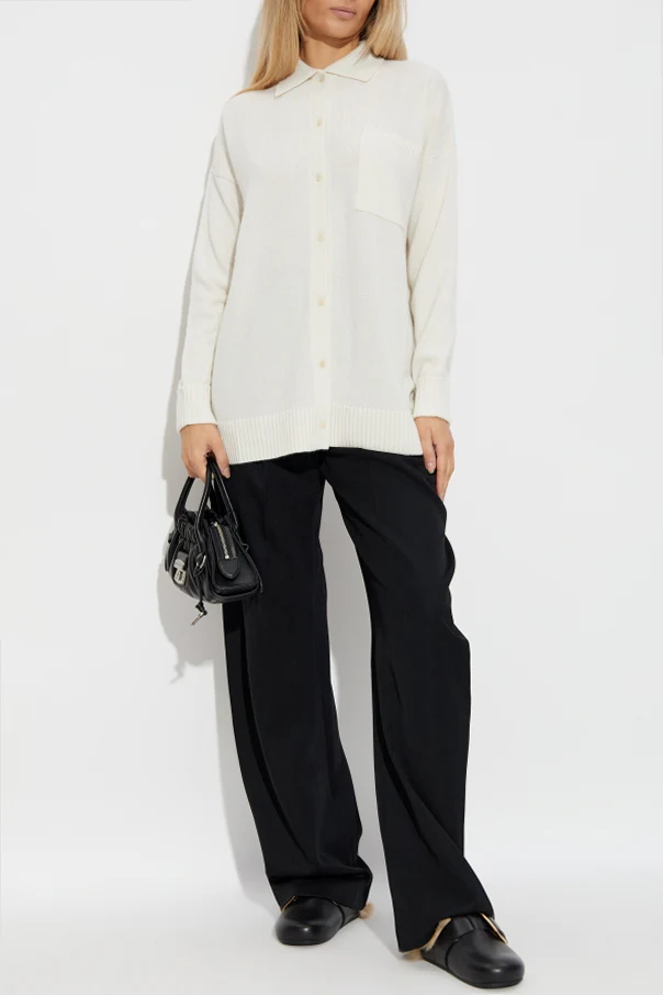 Das klassische Hemdkragen-Finish sowie die durchgehende Knopfleiste zeugen von höchster Liebe zum Detail. Eine dezent aufgesetzte Tasche auf der linken Brustseite verleiht Funktionalität, ohne die Harmonie des Schnitts zu stören. Der Bull Cardigan ist eine außergewöhnliche Wahl für Frauen, die zeitlose Schönheit und die meisterhafte Handwerkskunst von Max Mara zu schätzen wissen.