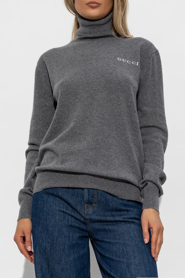 Kaschmir-Rollkragenpullover von Gucci ist die Quintessenz raffinierter Eleganz und zeitlosen Stils. Sorgfältig designt, mit einem geraden, leicht taillierten Schnitt, langen Ärmeln und dem charakteristischen, hohen Turtleneck-Kragen, besticht er durch seine subtile Form und Minimalismus. Der Pullover im universellen, dunkelgrauen Farbton ist aus luxuriösem Kaschmir gefertigt, der außergewöhnliche Weichheit und exzellente Wärmedämmung garantiert.