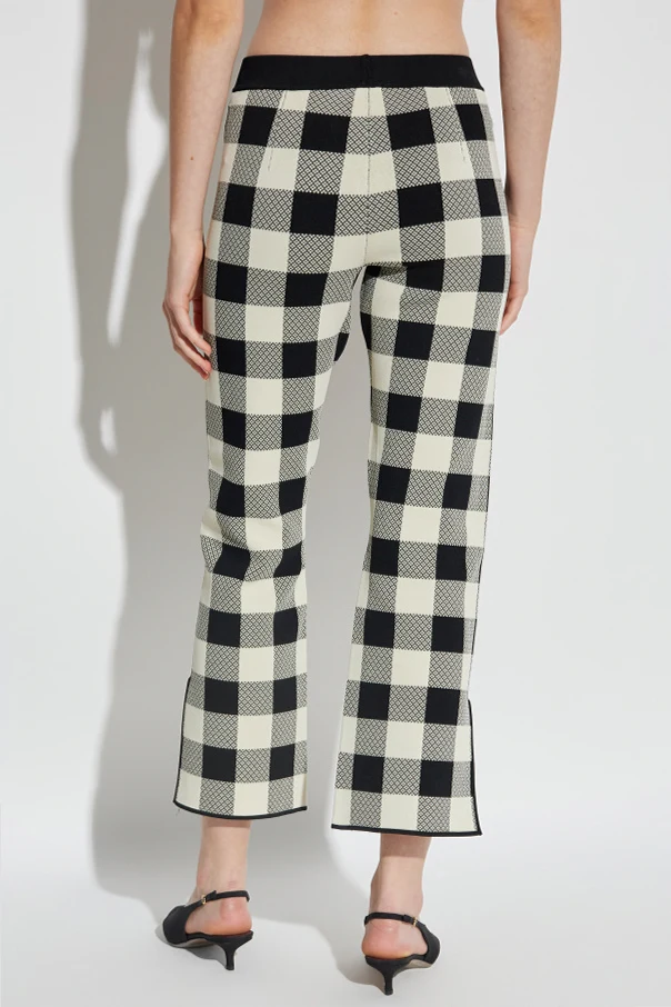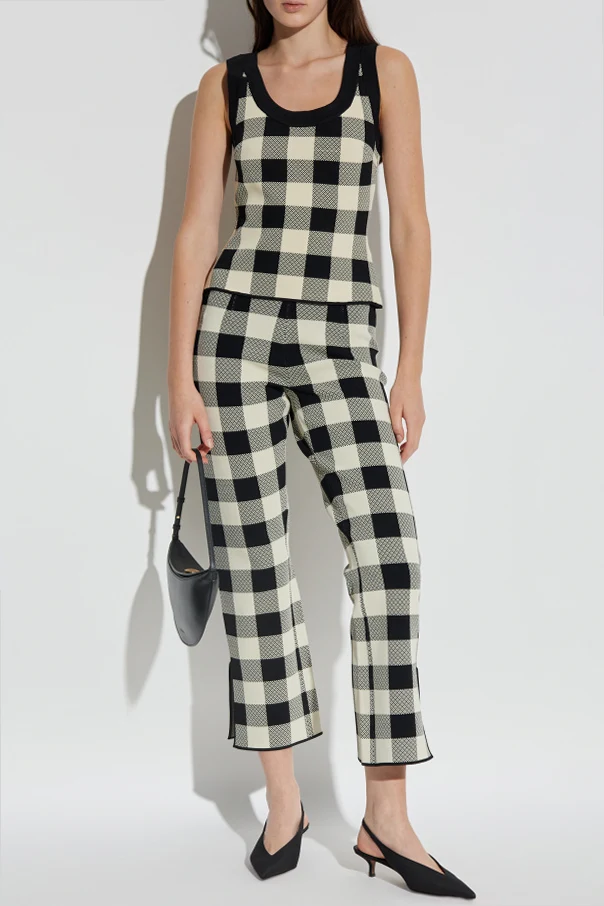 Die Hose Pippa von POSSE ist eine raffinierte Verbindung zeitloser Ästhetik und Funktionalität. Dieses außergewöhnliche Modell begeistert mit einem regelmäßigen, geometrischen Muster in großen grauen Karos, das in Kombination mit dem leicht ausgestellten, verkürzten Bein der Silhouette moderne Leichtigkeit verleiht.