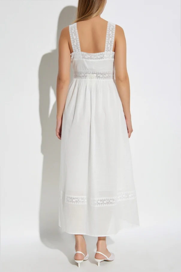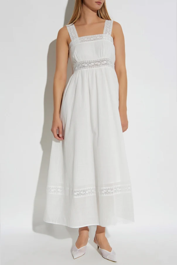 Das Kleid „Daphne“ von Posse strahlt klassische Eleganz aus und vereint auf harmonische Weise den raffinierten Empire-Stil mit der Leichtigkeit eines natürlichen Stoffes. Der gerade geschnittene Midi-Fit, der sanft von der dezent betonten Taille herabfällt, schmeichelt der Silhouette mit einer subtilen Passform im oberen Bereich. Breite Träger sowie horizontale Bänder aus durchbrochener Spitze mit floralen Motiven verleihen dem Kleid zusätzlichen Charme – diese exquisiten Akzente ziehen die Blicke auf sich und bewahren dennoch eine zeitlose Anmut.