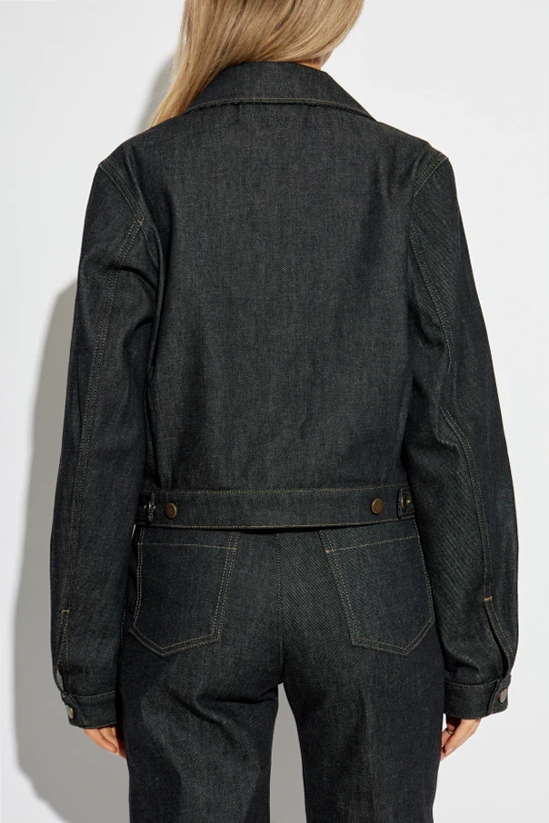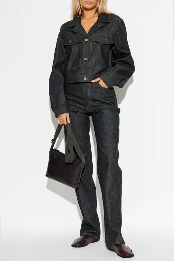 Jeansjacke von Lemaire ist ein Synonym für raffinierte Schlichtheit, inspiriert von internationaler Avantgarde. Aus hochwertigstem Denim gefertigt, begeistert sie durch die einheitliche, schwarze Farbe, die durch kontrastierende Steppnähte in hellbraunem Beigeton akzentuiert wird. Der klassische, leicht oversize Schnitt mit verkürzter Linie liegt wunderschön an der Silhouette und betont dezent die Taille.