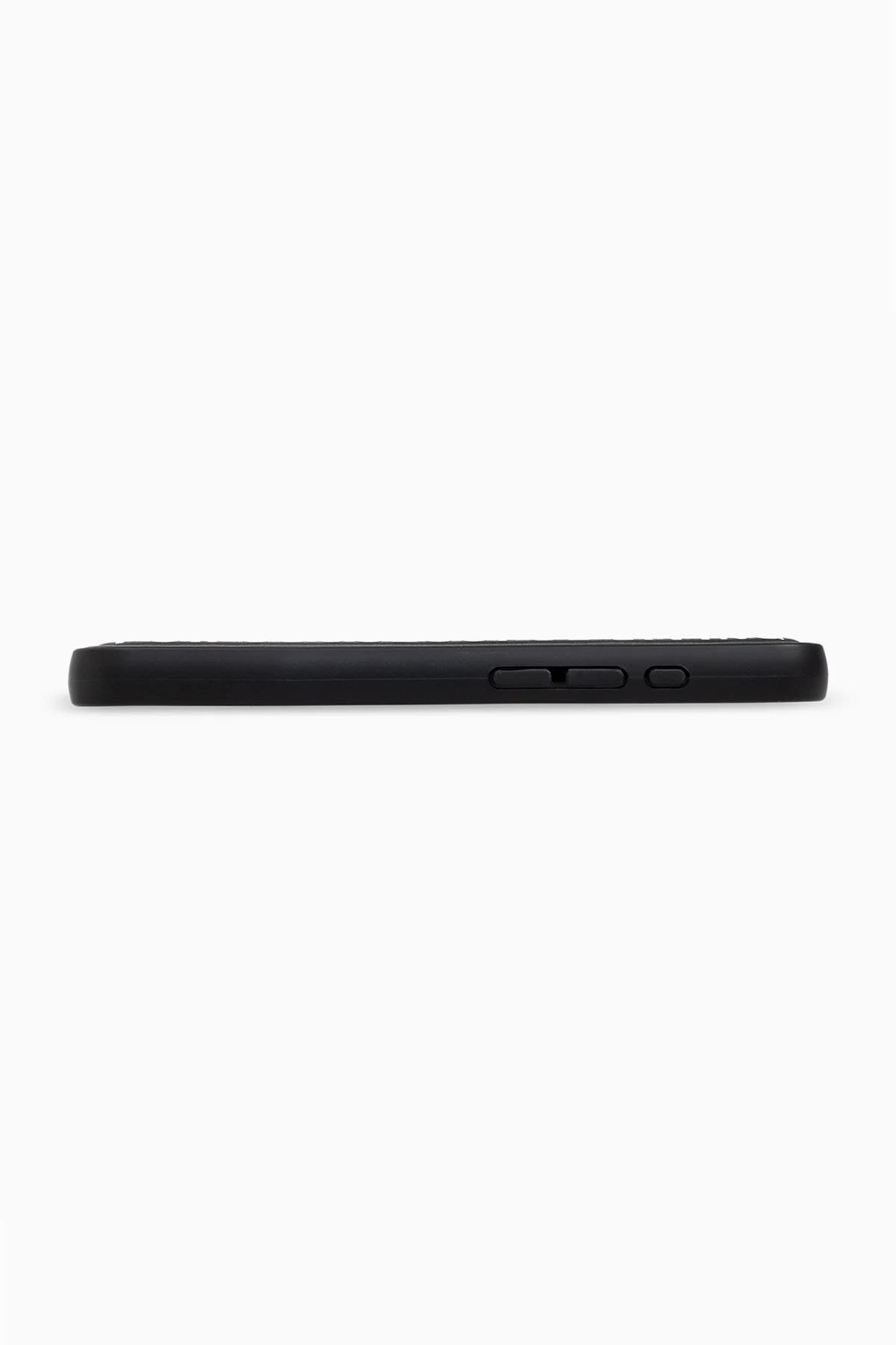 Die Form des Etuis ist perfekt an das Telefon angepasst, wobei Aussparungen für die Kamera sowie Öffnungen für die seitlichen Tasten berücksichtigt werden, was volle Funktionalität ohne Abnahme der Hülle ermöglicht. Die rechteckige Form mit abgerundeten Ecken verleiht ihm eine subtile Eleganz und betont gleichzeitig das moderne Design, das für die Marke Diesel charakteristisch ist.
