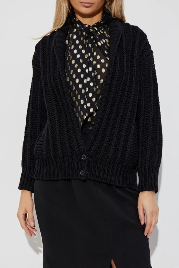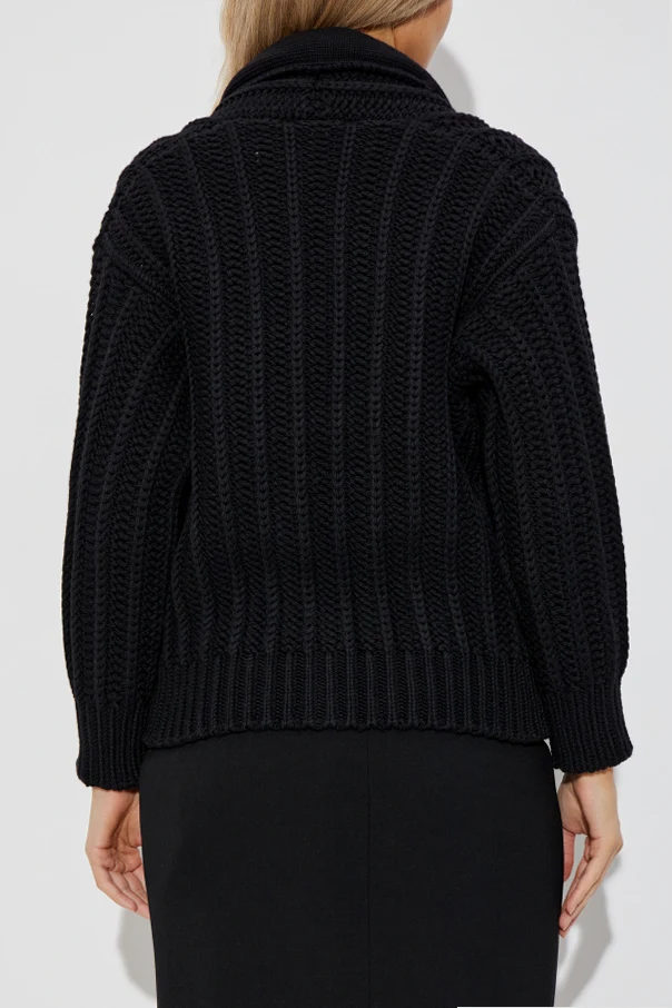 Woll-Cardigan mit Taschen von Dolce & Gabbana ist die Quintessenz italienischer Eleganz und ein Zeugnis zeitlosen Stils. Sorgfältig gefertigt aus dickem, voluminösem Wollgarn, zeichnet sich der Pullover durch markante, vertikale Strickmuster aus, die ihm eine edle Struktur und ein luxuriöses Erscheinungsbild verleihen.