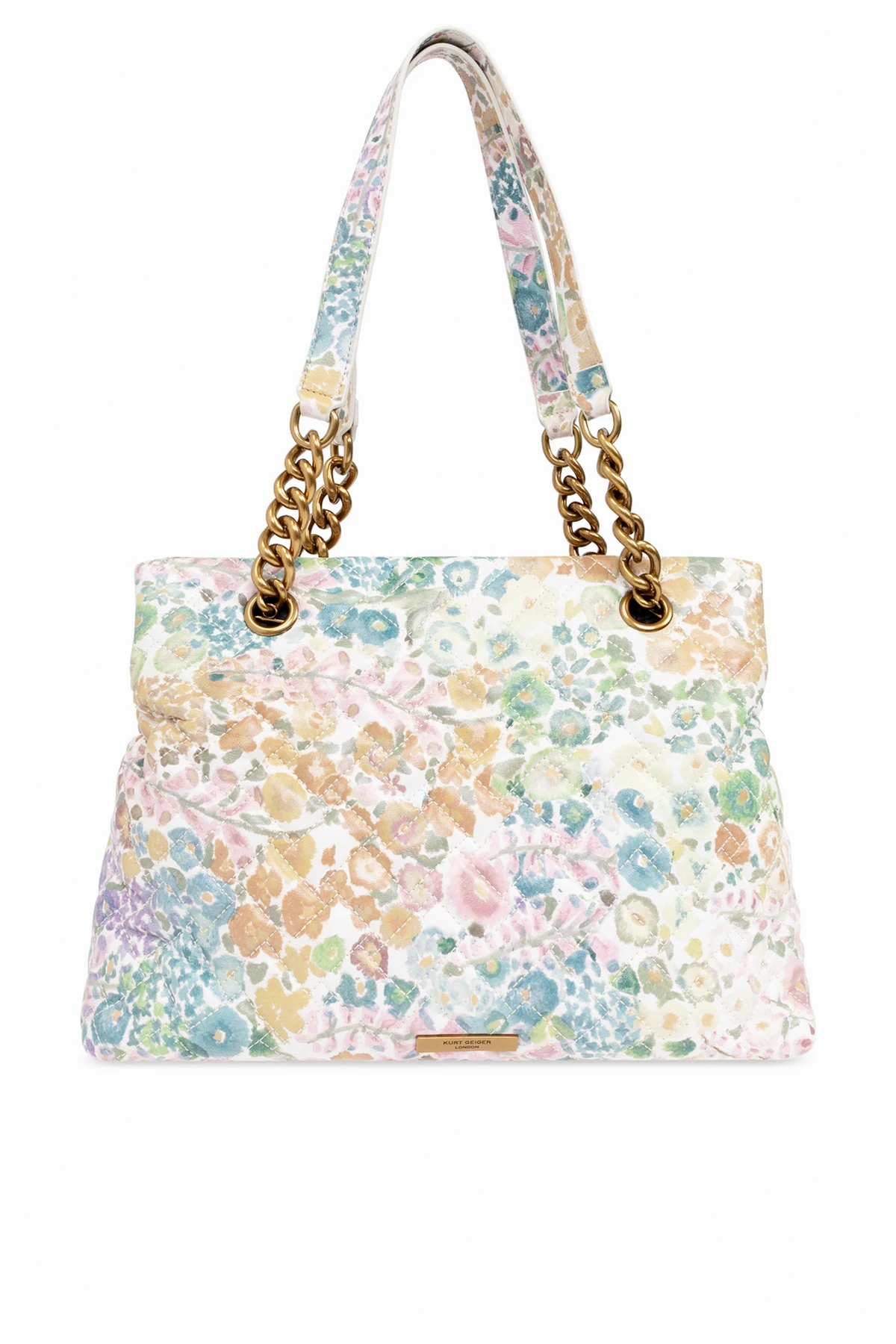 Wir präsentieren Ihnen die raffinierte und anmutige Kensington Shopper-Tasche, die das Wesen des Frühlingsgefühls und der Eleganz verkörpert. Der Schöpfer dieses außergewöhnlichen Werks, Kurt Geiger , lässt sich von der Fülle der Natur inspirieren, was sich in dem wunderschönen, blumigen Muster widerspiegelt, das in pastelligen Nuancen von Rosa, Blau, Gelb und anderen Farben getränkt ist und einen leichten und erfrischenden Look kreiert.