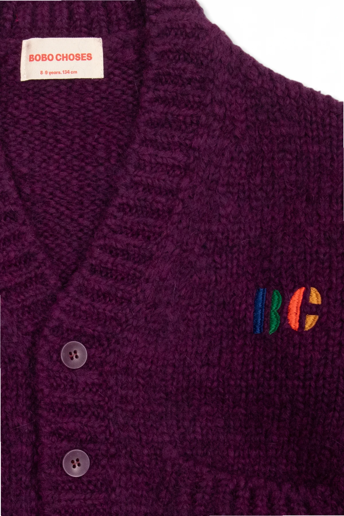 Purple cardigan from Bobo Choses. Embroidered with the brand's logo, this style features a V-neckline, button fastenings, two slip pockets and long sleeves.