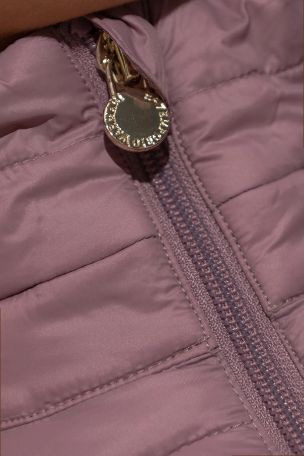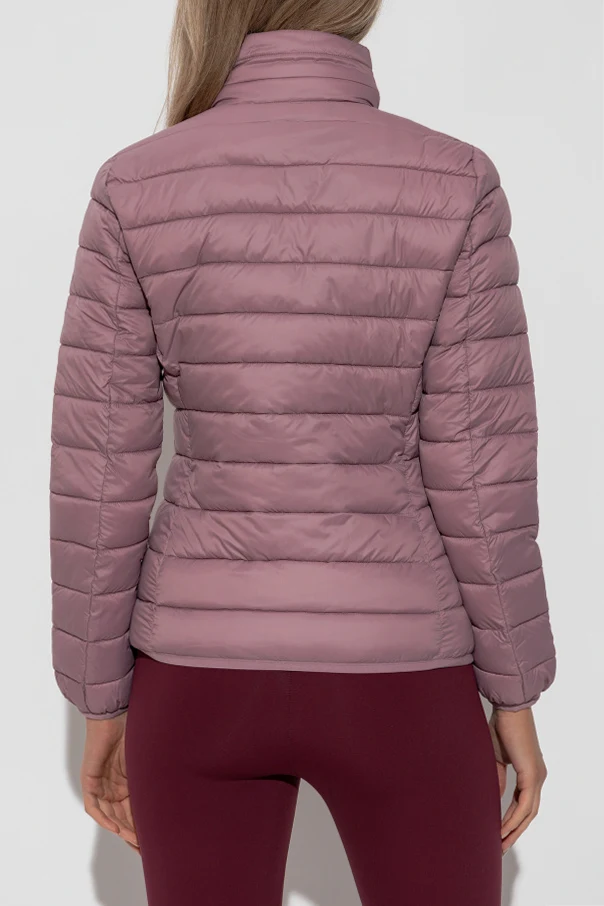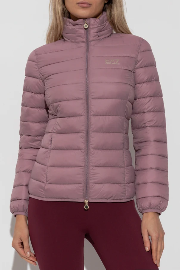 Gefütterte Jacke mit Logo der Marke EA7 Emporio Armani ist die Quintessenz italienischer Eleganz in modernem, sportlichem Stil. Im dezenten Roséton gehalten, besticht sie durch einen leicht glänzenden Stoff mit horizontaler Steppung, der nicht nur modischen Stil ausstrahlt, sondern auch eine außergewöhnliche Wärmedämmung bietet. Der kurze, taillierte Schnitt mit sanft betonter Taille modelliert die Silhouette perfekt, während der Stehkragen dem Ganzen einen raffinierten Charakter verleiht.