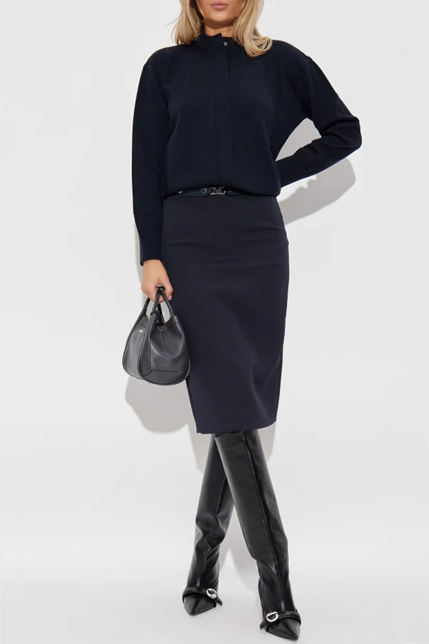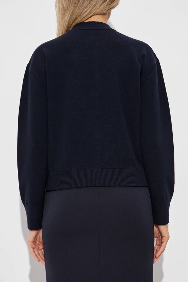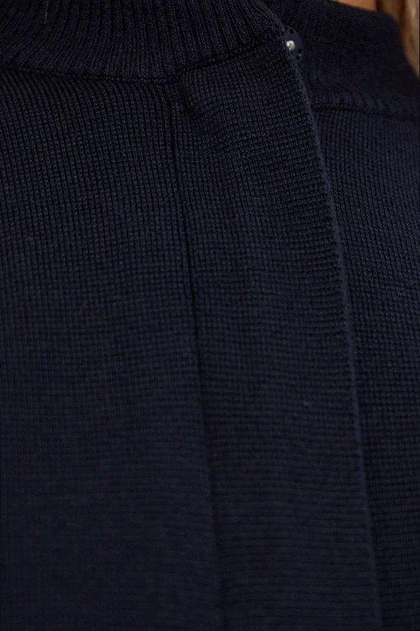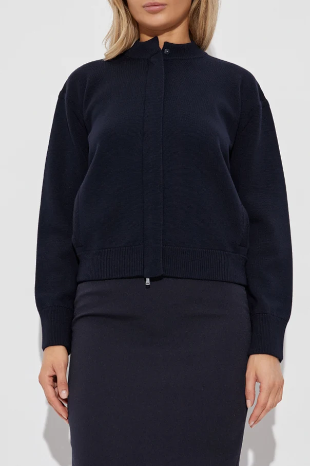 Das hochwertige Strickmaterial aus reiner Wolle mit kompakter, glatter Struktur begeistert durch seine edle Verarbeitung, akzentuiert durch breite, gerippte Abschlüsse. Der dezent versteckte Reißverschluss, verborgen unter einer breiten Blende und mit einem subtilen Druckknopf versehen, ergänzt die minimalistische und funktionale Form des Designs perfekt. Ein kurzer, gerippter Stehkragen verleiht dem Modell eine moderne Ausstrahlung, während das Fehlen sichtbarer Logos den Eindruck zeitloser Klasse verstärkt.