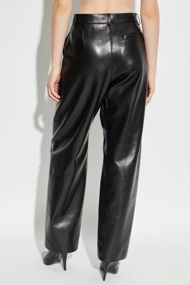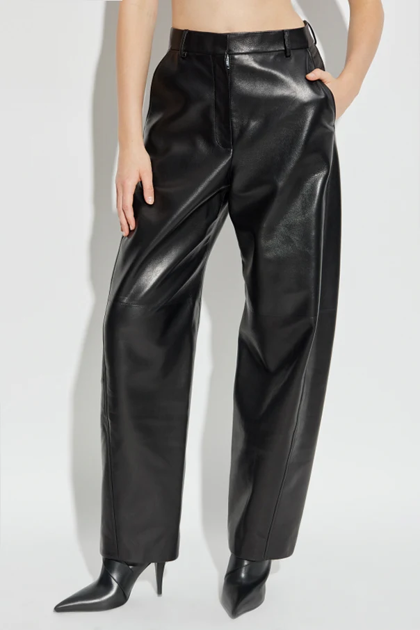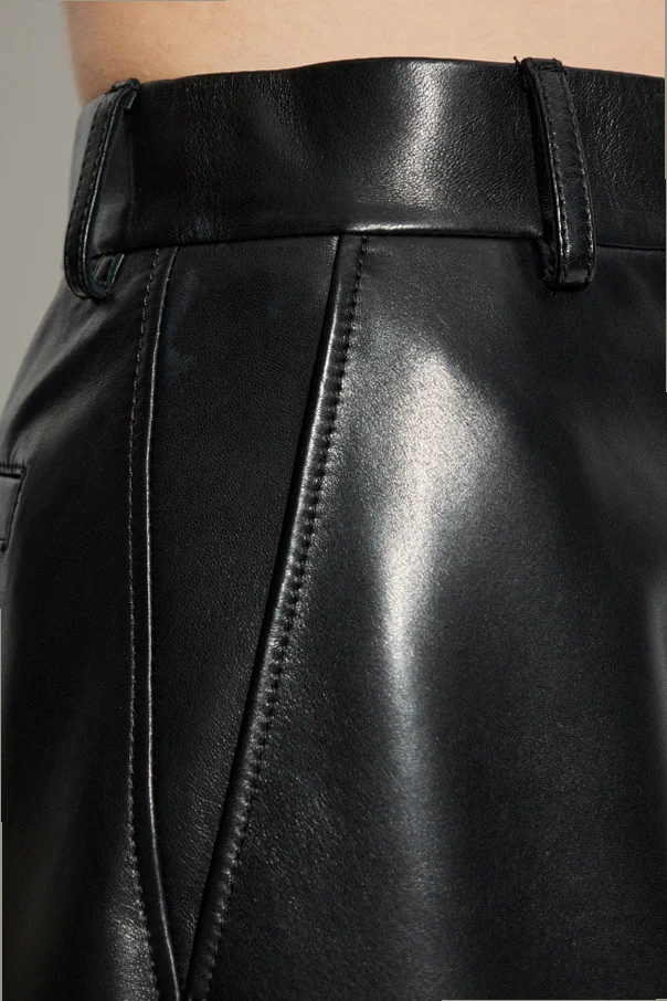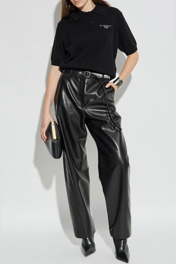 Lederhose mit weitem Bein von Givenchy ist ein zeitloser Ausdruck aristokratischer Eleganz und moderner Lässigkeit. Das präsentierte Modell ist aus hochwertigstem, weichem, schwarzem Lammleder gefertigt, dessen subtiler Glanz und Zartheit sich in jedem Detail widerspiegeln. Die deutlich weiten Wide-Leg-Beine und die hohe Taille formen die Silhouette auf wunderschöne Weise und strecken sie optisch.