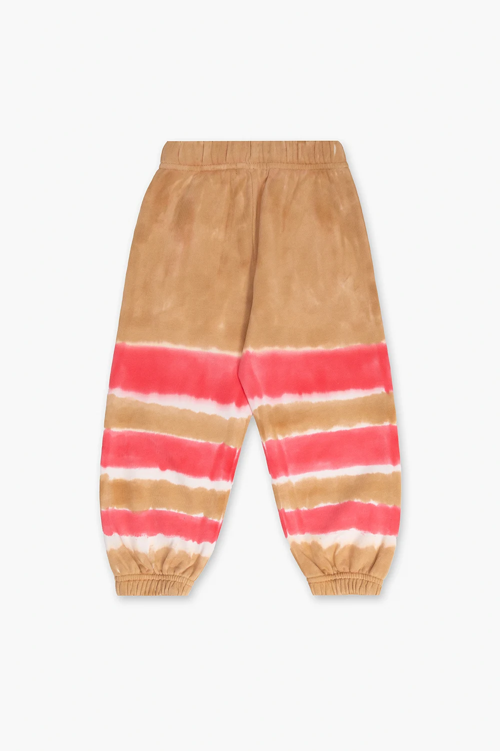 Brown, pink and white sweatpants from Palm Angels Kids. Made of cotton, this pair is complete with an elastic drawstring waistband, logo print, two slip pockets and ribbed cuffs.