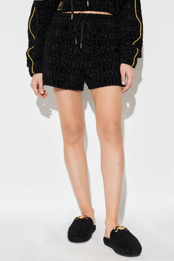 Wir präsentieren die Shorts mit Logo aus der exklusiven Kollektion von Versace Home, die die Quintessenz von Luxus und Raffinesse darstellen. Diese schwarzen Shorts sind aus hochwertigster Baumwolle gefertigt, was außergewöhnliche Weichheit und Tragekomfort gewährleistet.