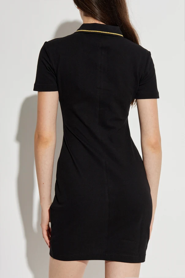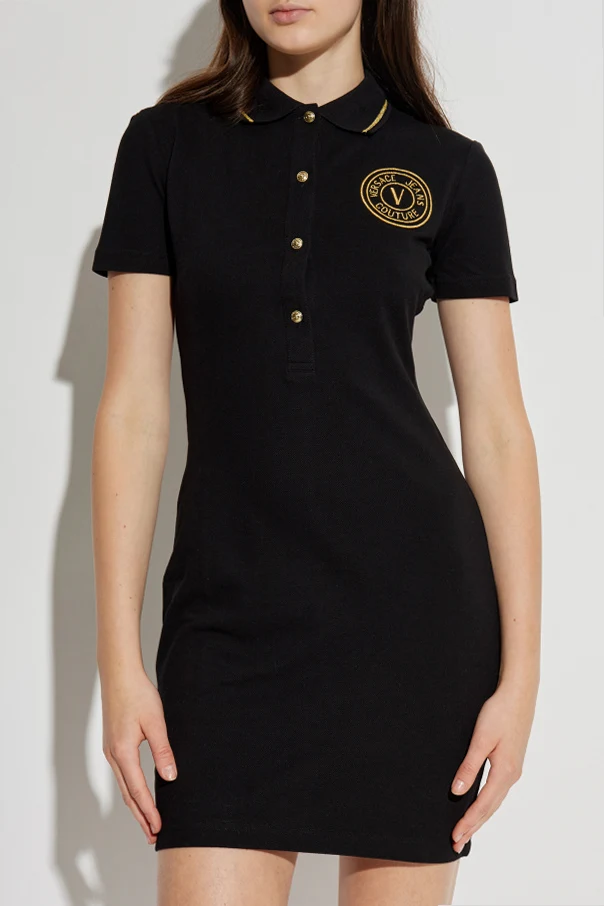 Das Polo-Kleid von Versace Jeans Couture ist eine exquisite Kombination aus sportivem Chic und erstklassiger Eleganz. Der kurze, figurbetonte Schnitt betont die Vorzüge der Silhouette, während das tiefe Schwarz die Aura der Raffinesse unterstreicht.