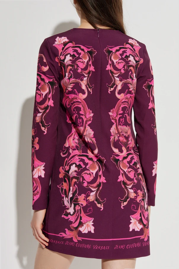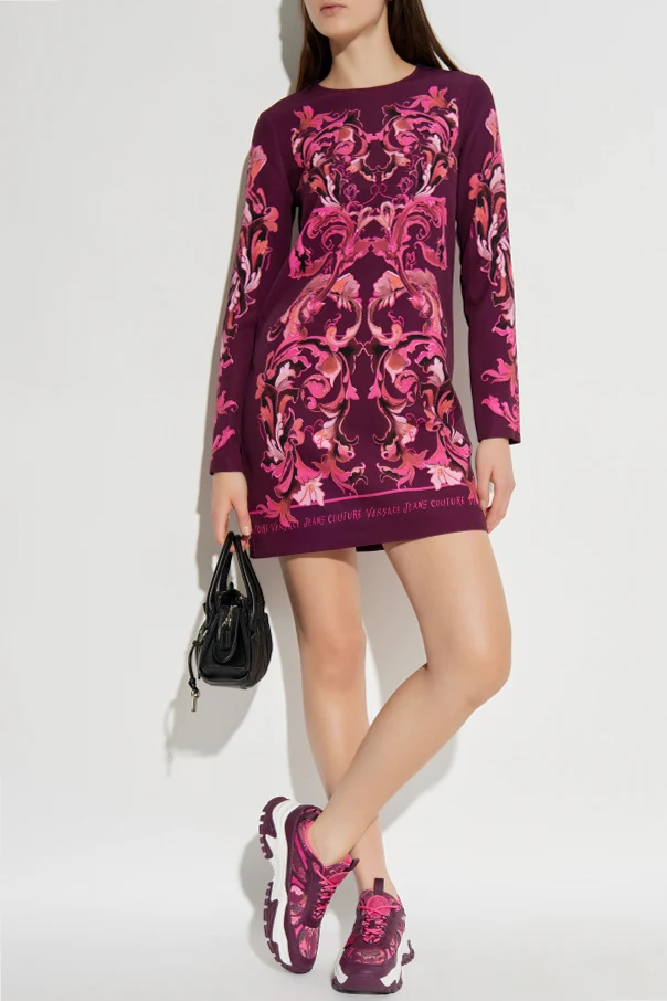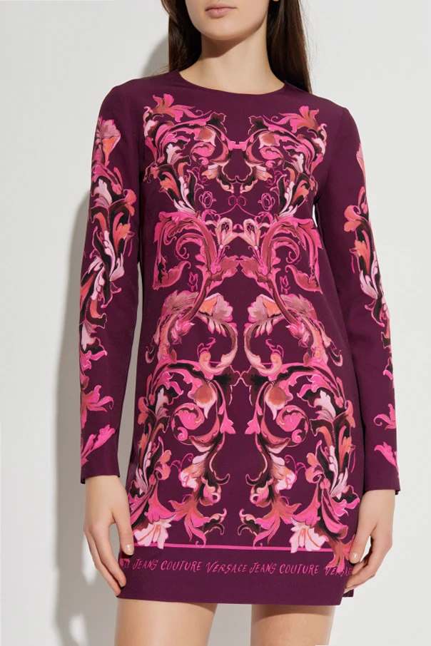 Kleid mit „Barocco“-Print von Versace Jeans Couture ist die Essenz moderner Eleganz, bei der sich der opulente barocke Stil mit der modernen Silhouette vereint. Der Mini-Schnitt, der die Figur dezent betont, sowie die langen Ärmel und der Rundhalsausschnitt bilden eine harmonische Einheit, die Liebe zum Detail und hohen Tragekomfort offenbart.